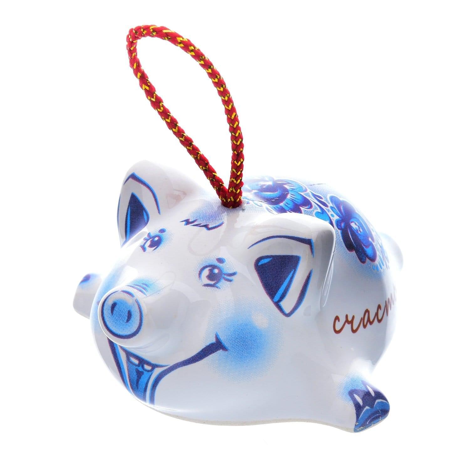Колокольчик в виде свиньи "Удачи! Счастья" из керамики - говорящий сувенир.