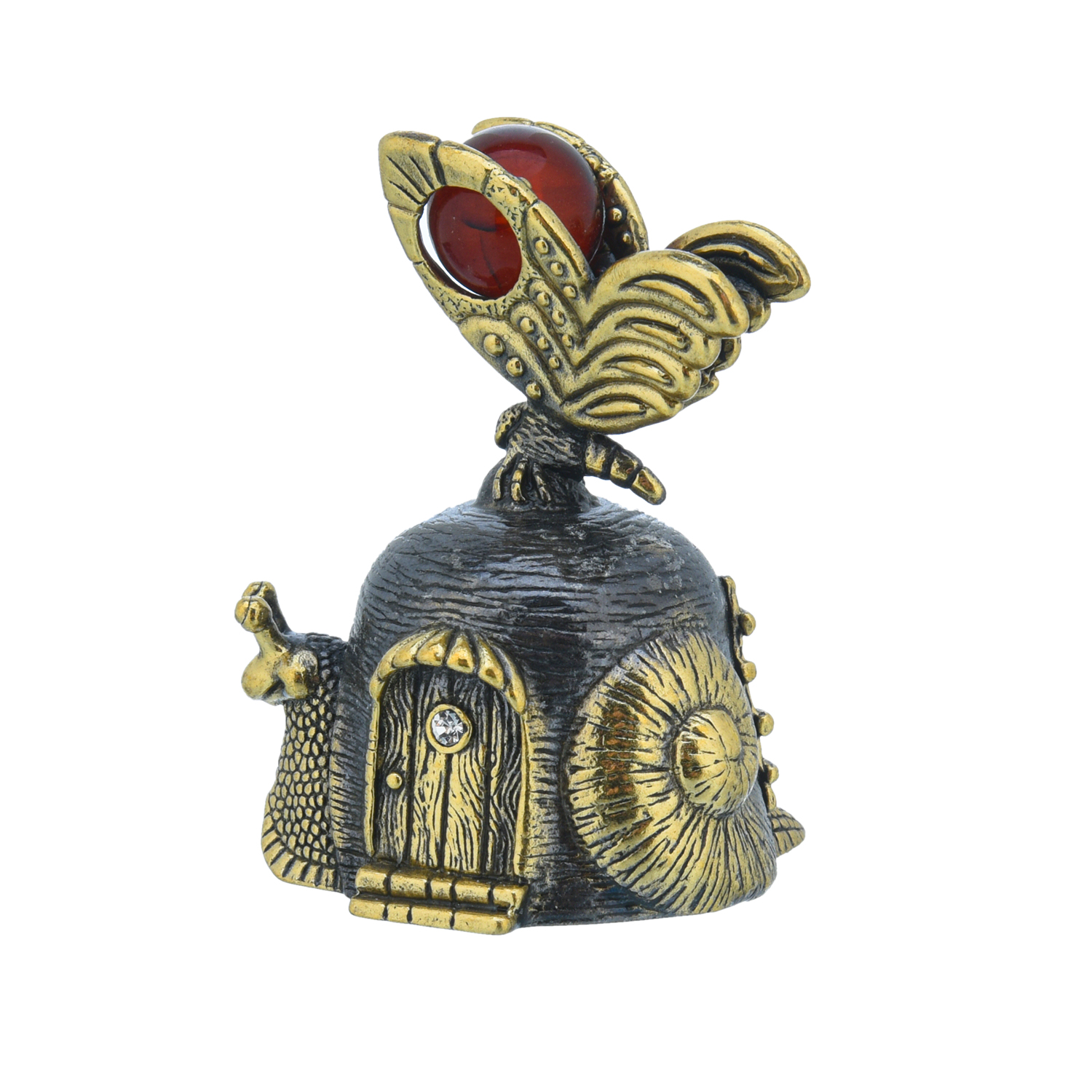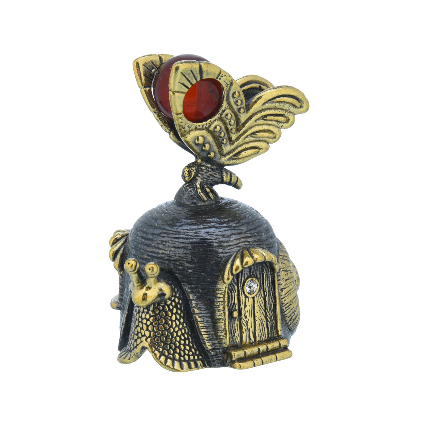 Русские подарки и сувениры → Коллекционирование → Колокольчики → Колокольчик с янтарем "Улитка с бабочкой"