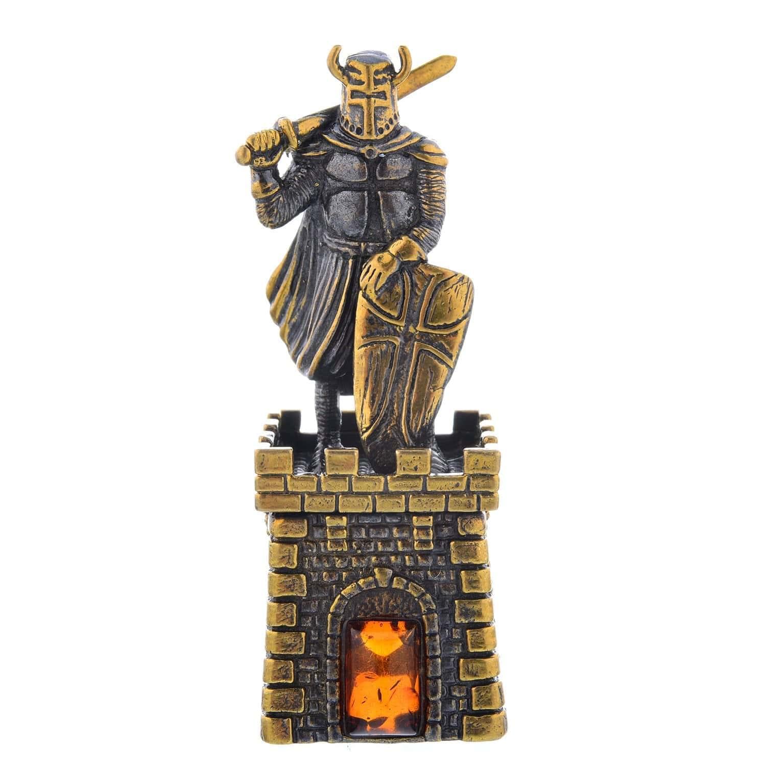 Колокольчик с янтарем "Крепость с Рыцарем со щитом" (коньячный)