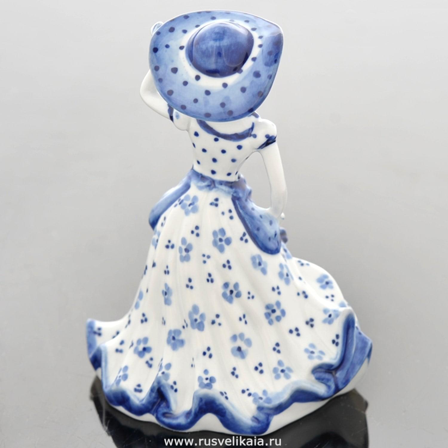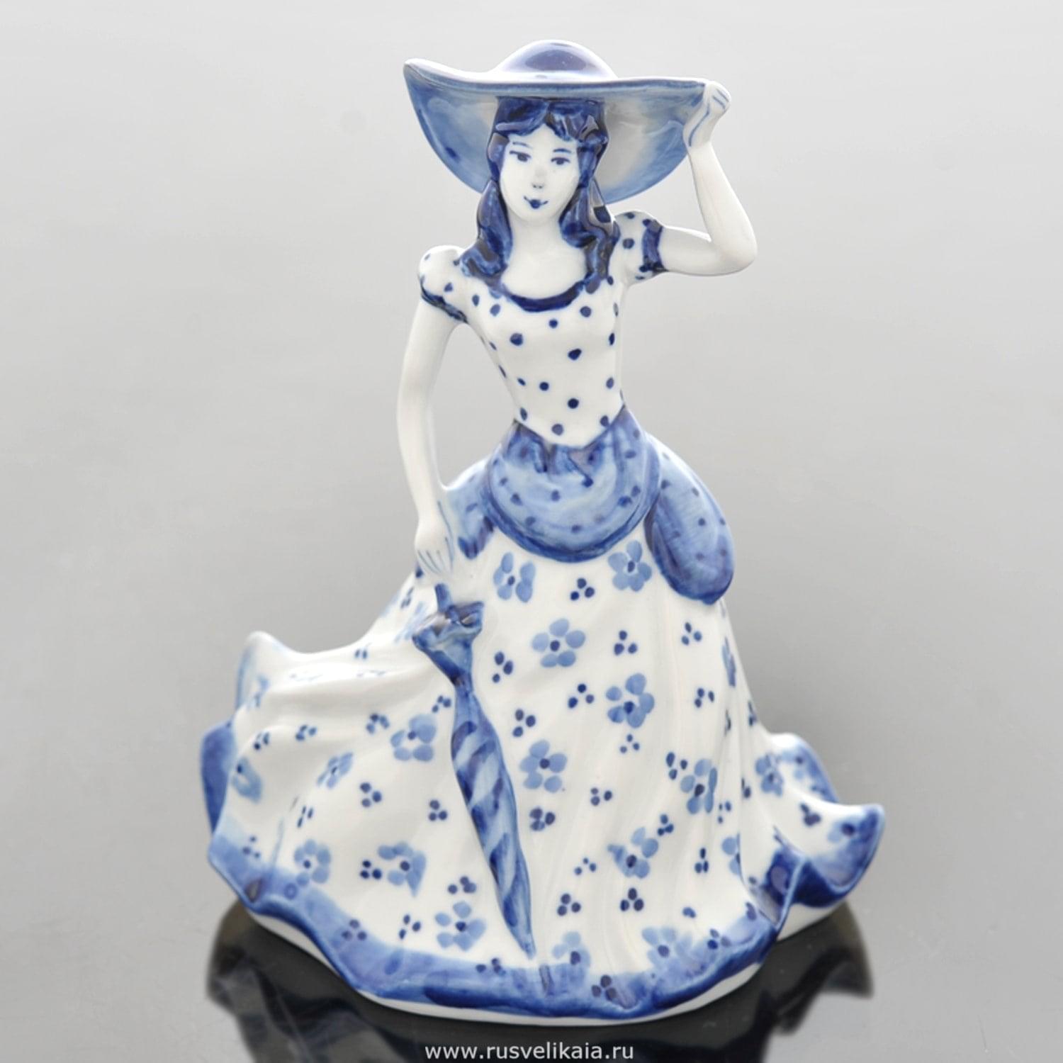 Русские подарки и сувениры → Коллекционирование → Колокольчики → 0020148/коб Гжель Колокольчик "Кокетка в шляпе (с зонтом)" 16см Авт. Тарыгин М. В.