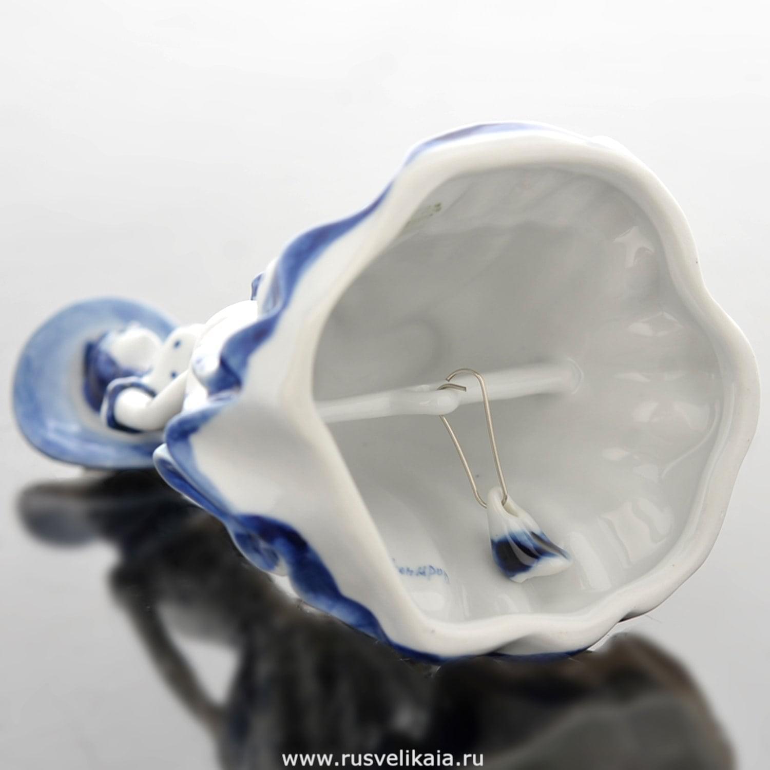 Колокольчик создан из экологически чистого фарфора и расписан в старинной технике Гжель. Это искусство зародилось еще в 17 веке и продолжает развиваться и процветать по сей день. Благодаря скрупулезной работе удалось точно передать сочность красок и нежный оттенок платья. Яркая роспись отлично сочетается с нежно-сливочным фарфором, подчеркивает его красоту и изящество. Исполнена изящная статуэтка художником Михаилом Тарыгиным. В прошлом автор работал на объединении «Гжель», позднее у него возникла идея создать собственную мастерскую. Сегодня он изготавливает посуду и предметы интерьера на частном производстве. Работы его легки, красивы, утонченны и притягательно блестят. ....Извините, товар отсутствует
