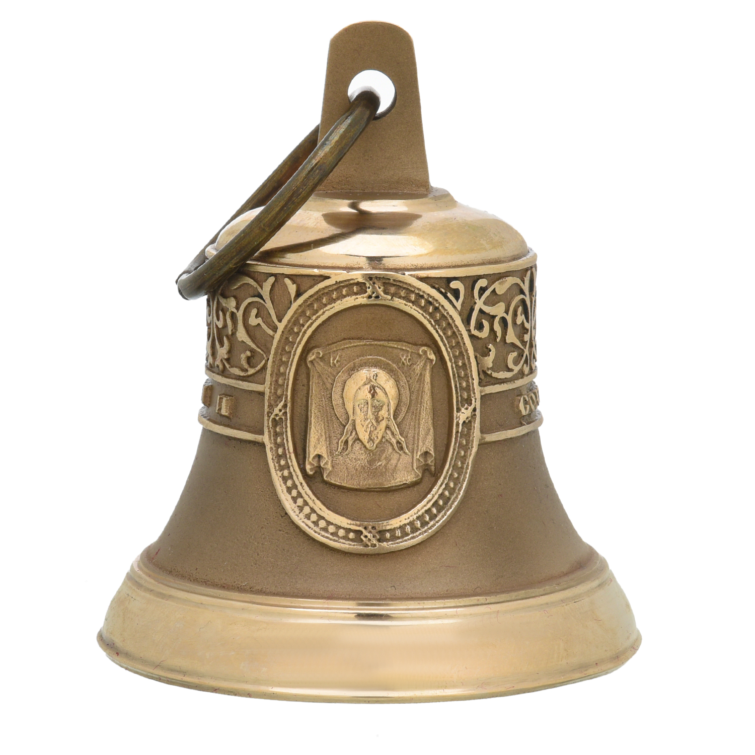 Колокольчик бронзовый "Божья Матерь Спаси и сохрани".Размер: 75х75х85 мм