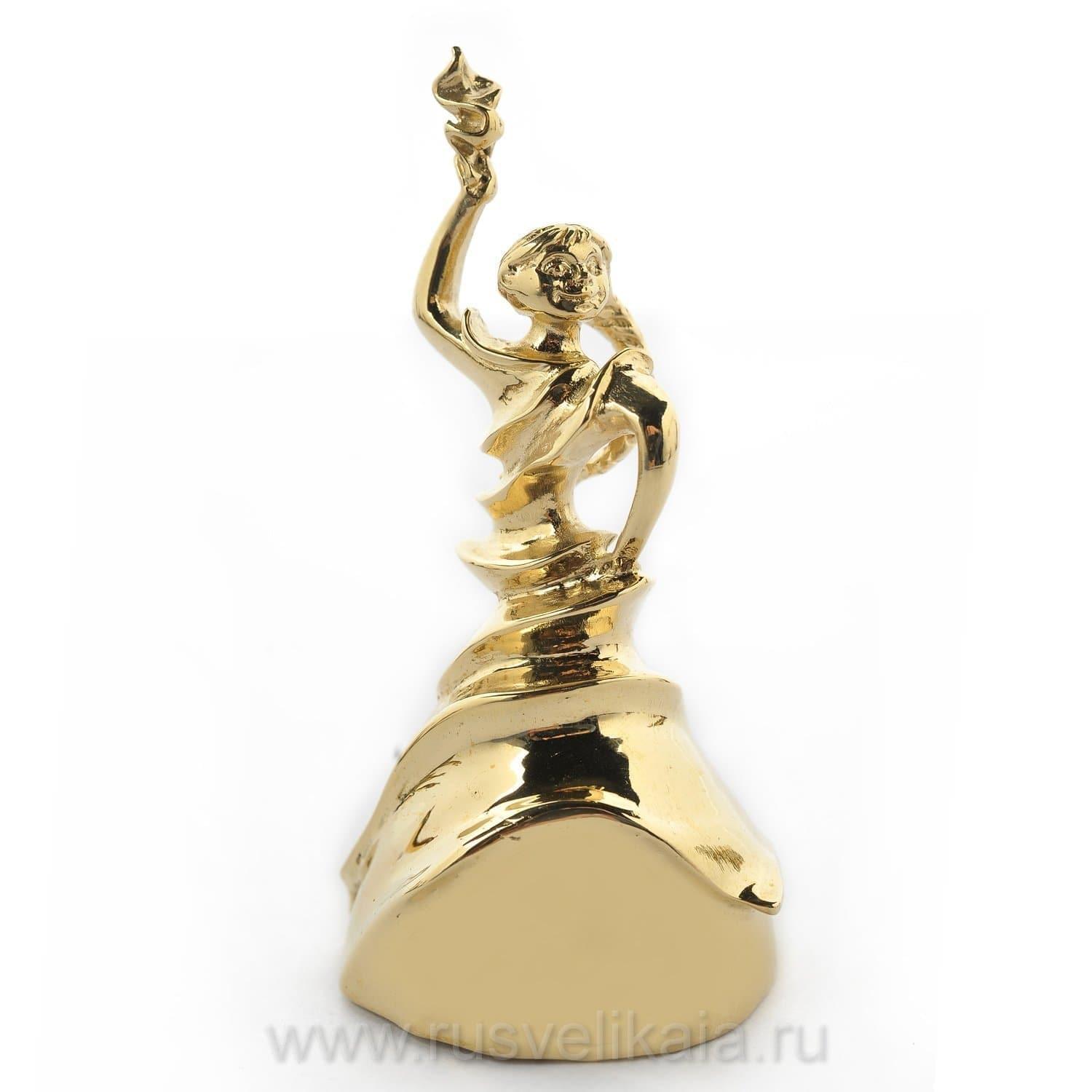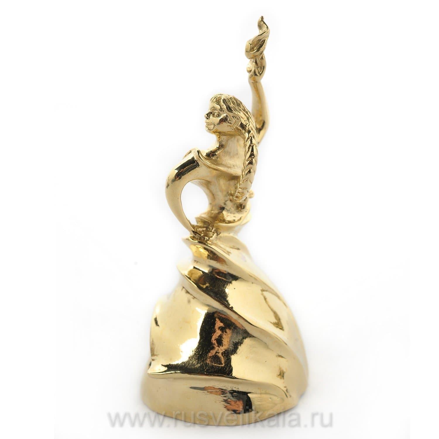 Яркая бронзовая статуэтка? Вовсе нет! Внешность обманчива. Под видом красивой девушки с длинной косой и факелом в руке – персонажем известной сказки Павла Бажова - мастера замаскировали самый настоящий колокольчик. «Огневушка» создана методом художественного литья по оригинальному авторскому эскизу. Несмотря на небольшой размер сувенира, высота Огневушки всего десять сантиметров – мастера детально проработали внешность героини: личико, платье, косичка…