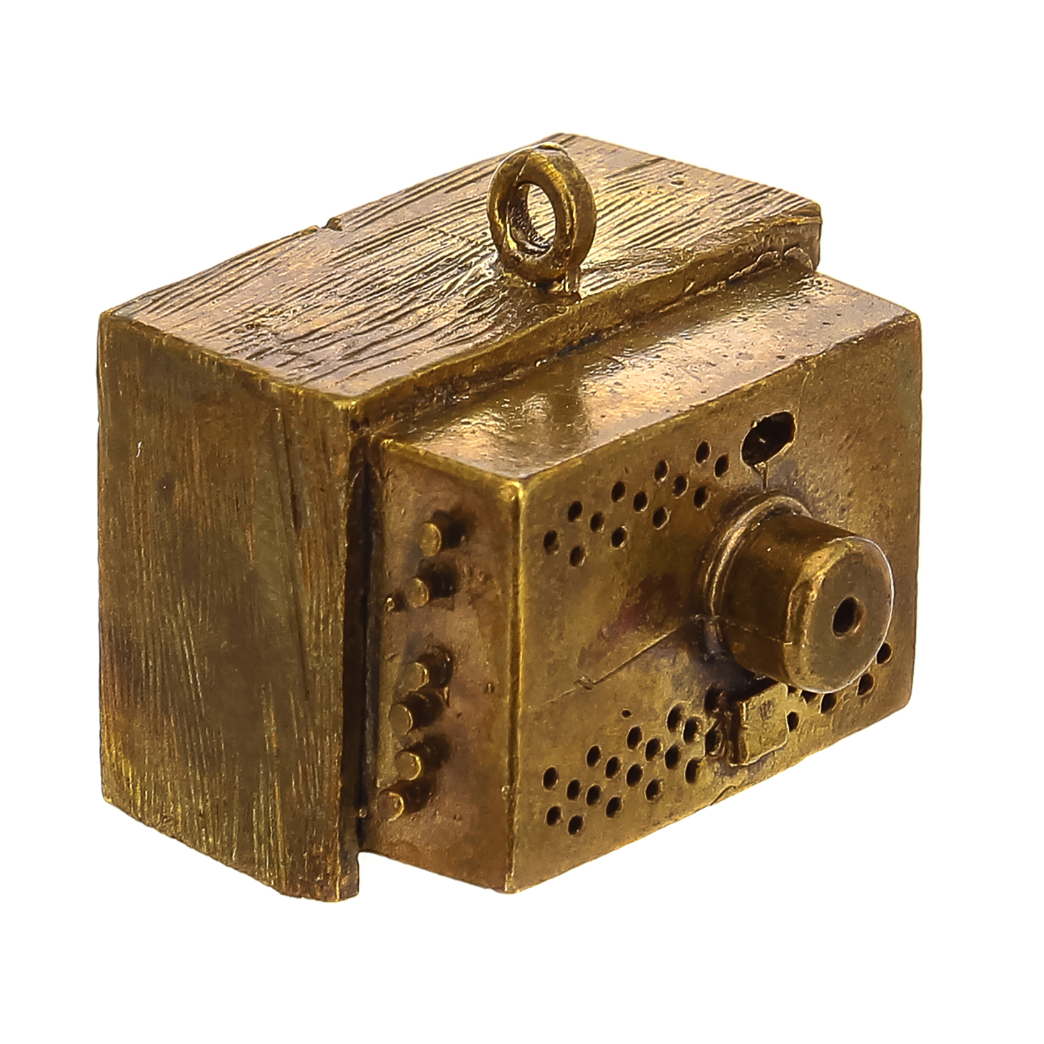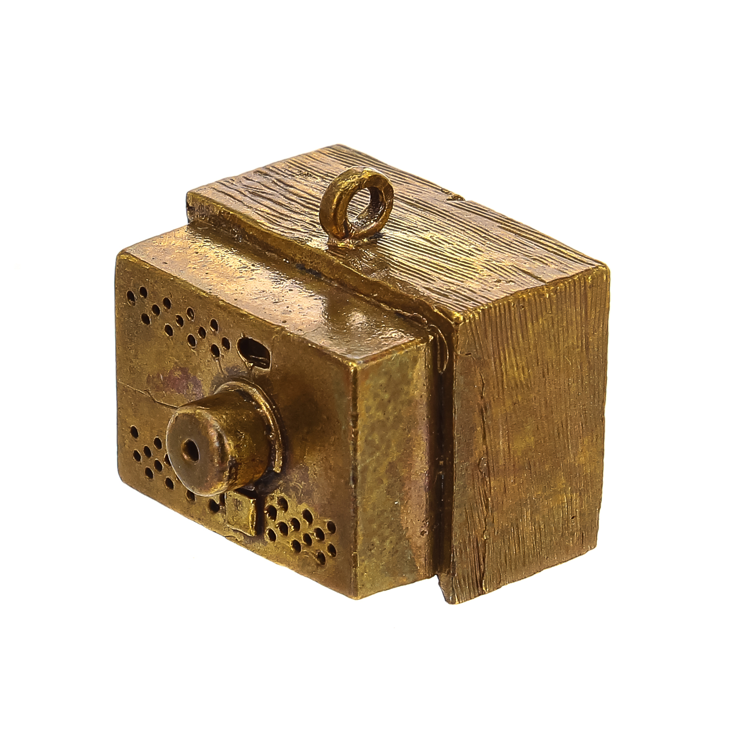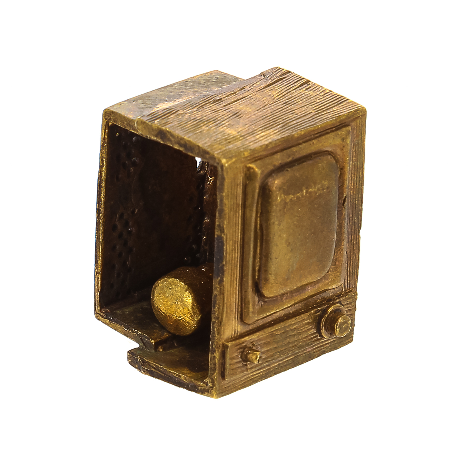 Колокольчик объединяет народы и культуры всего мира. Он широко  использовался в быту древних  египтян, римлян, скифов, этрусков, греков, китайцев и славян. Самые древние найденные археологами колокольчики относятся к 23-11 векам до нашей эры. Вашему вниманию - оригинальный вариант дизайнерского подарка  и образец старинного промысла, бронзового литья. Колокольчик с туловом в виде старого советского телевизора изготовлен   художником по металлу   в соответствии с авторским эскизом  и оформлена позолотой и патиной.
