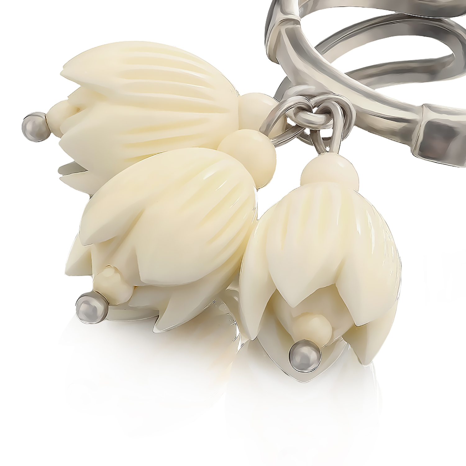0068729 Бивень мамонта Кольцо"Цветочки"серебрение