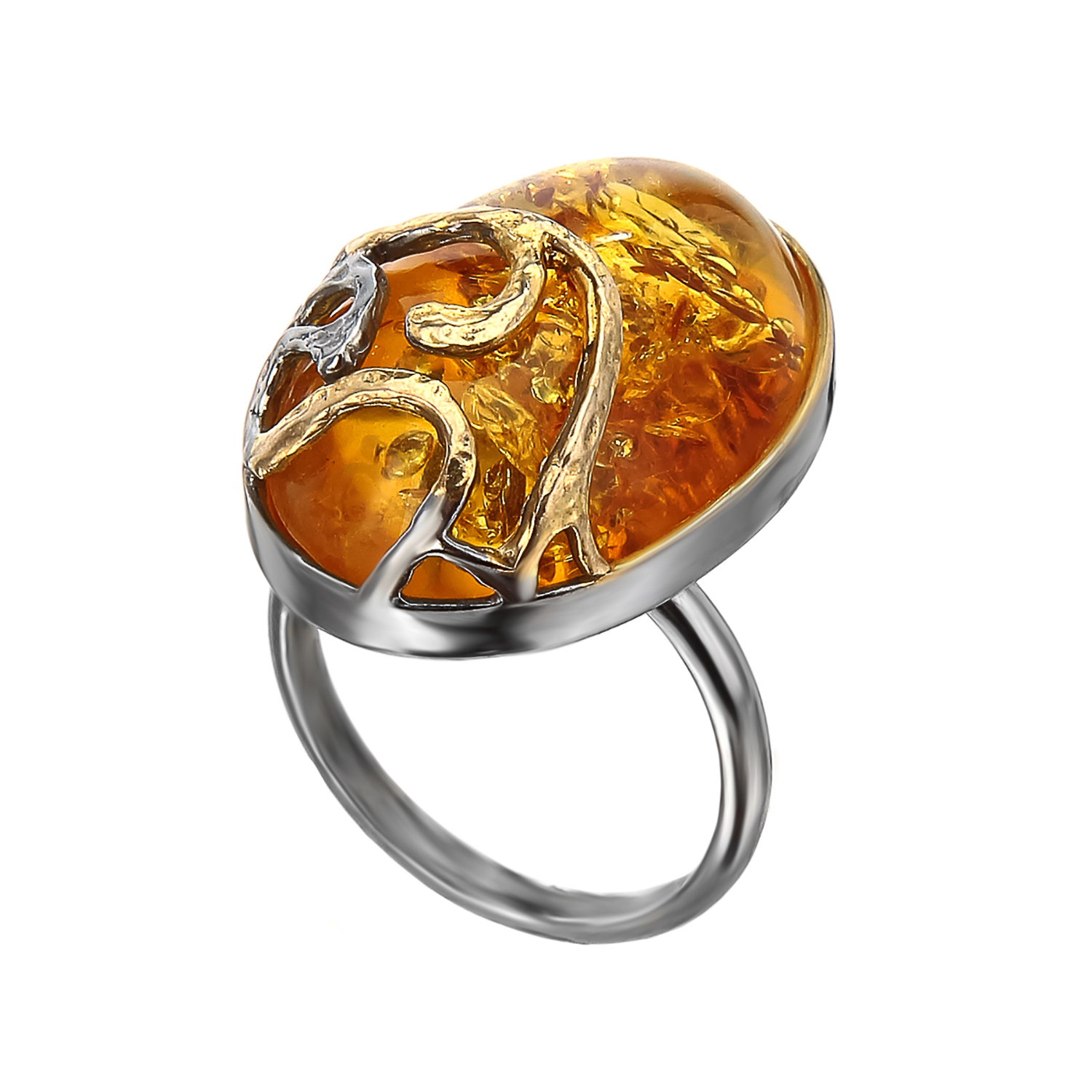 Кольцо с янтарной вставкой. Вес 7,24 г