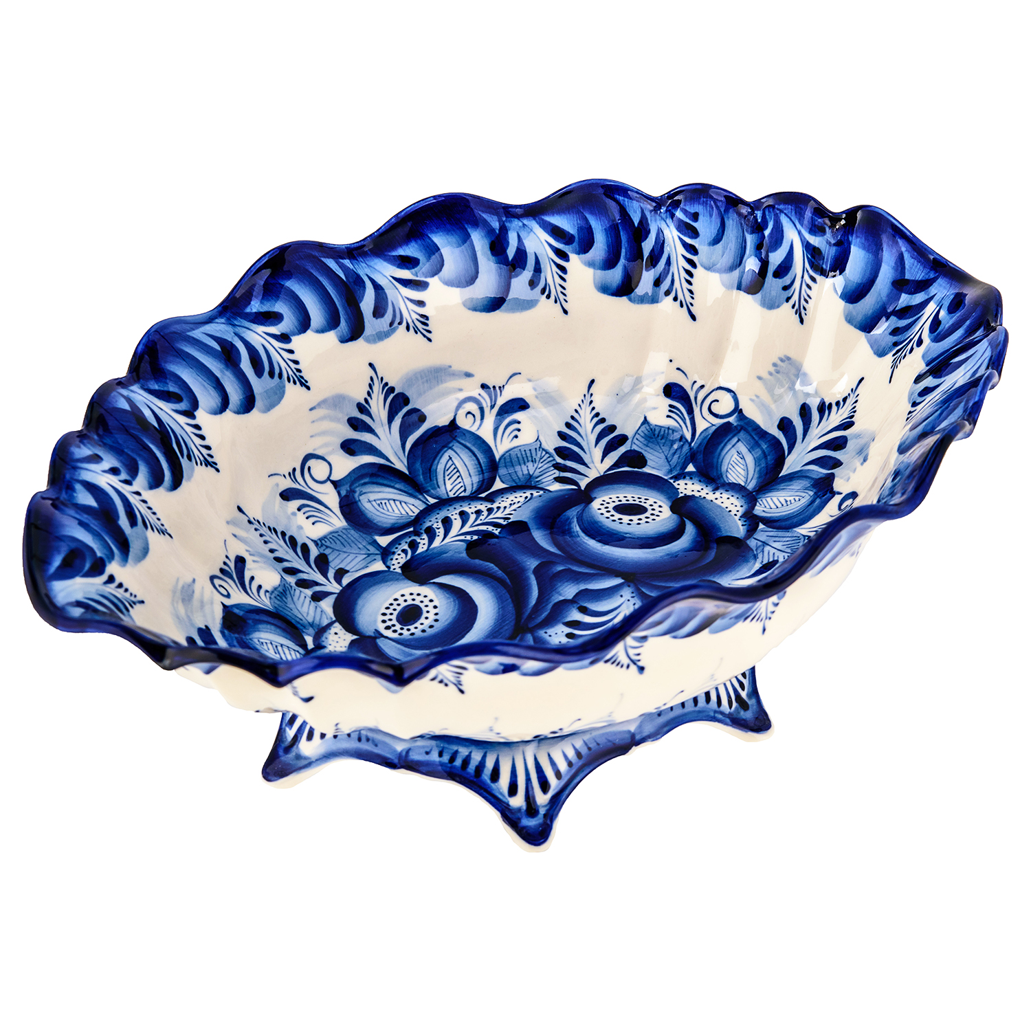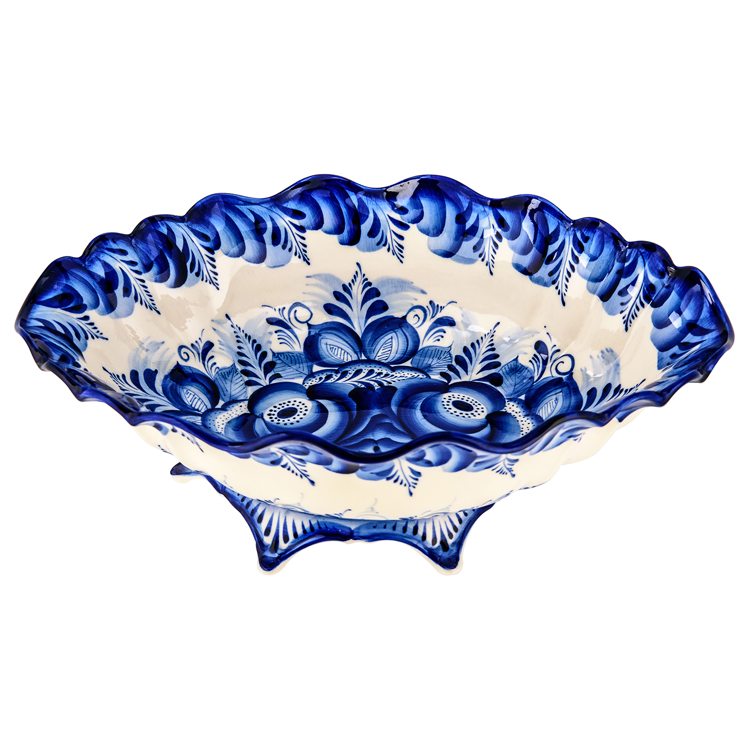 Конфетница "Весна" в кобальте. Гжель