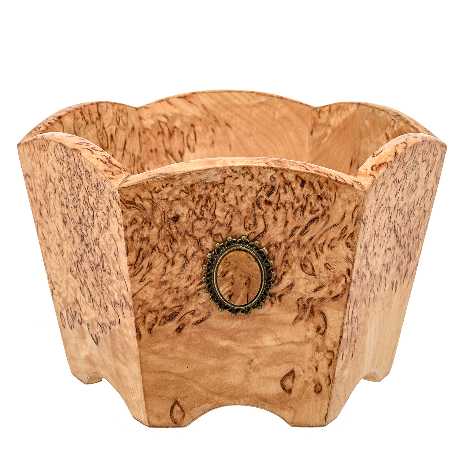 Конфетница шестигранная из карельской березы