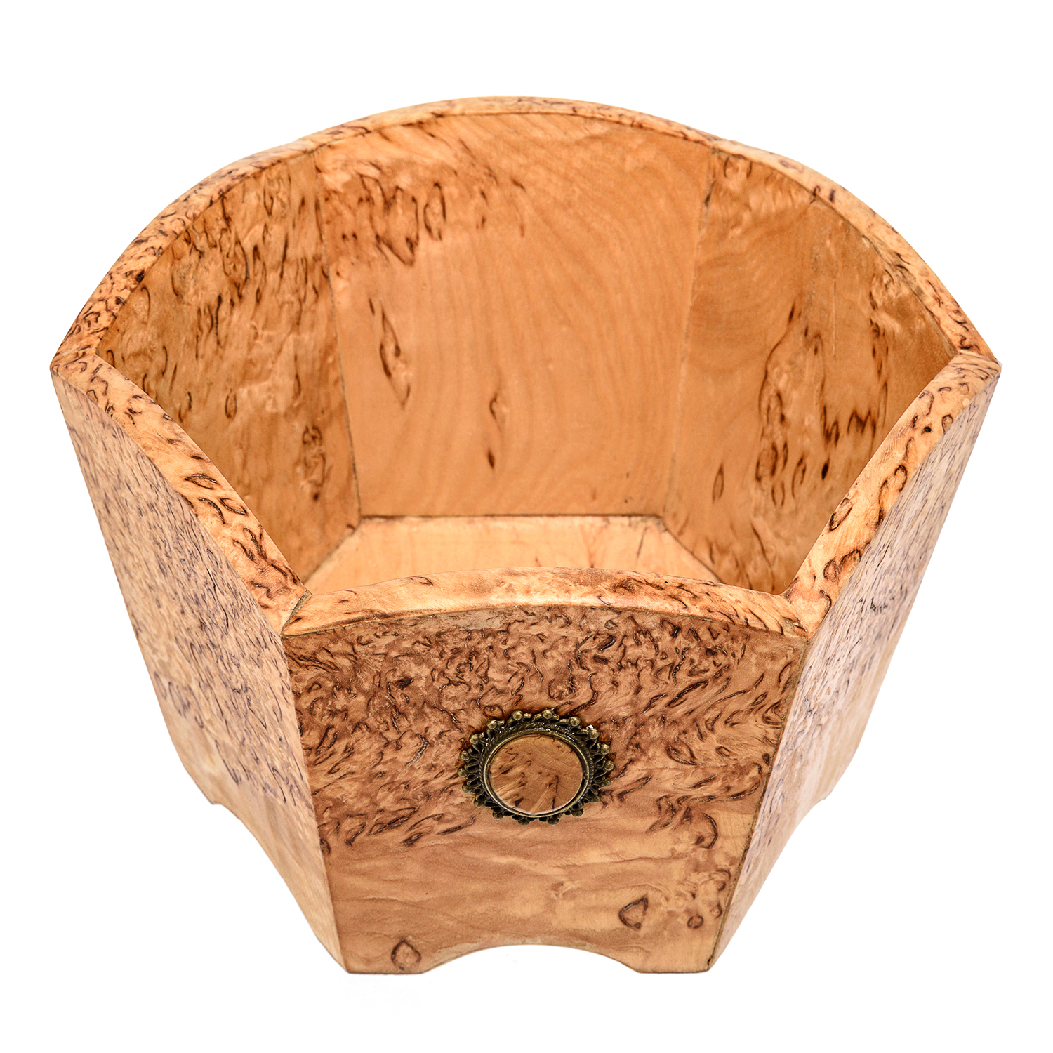 Конфетница деревянная шестигранная из карельской березы.