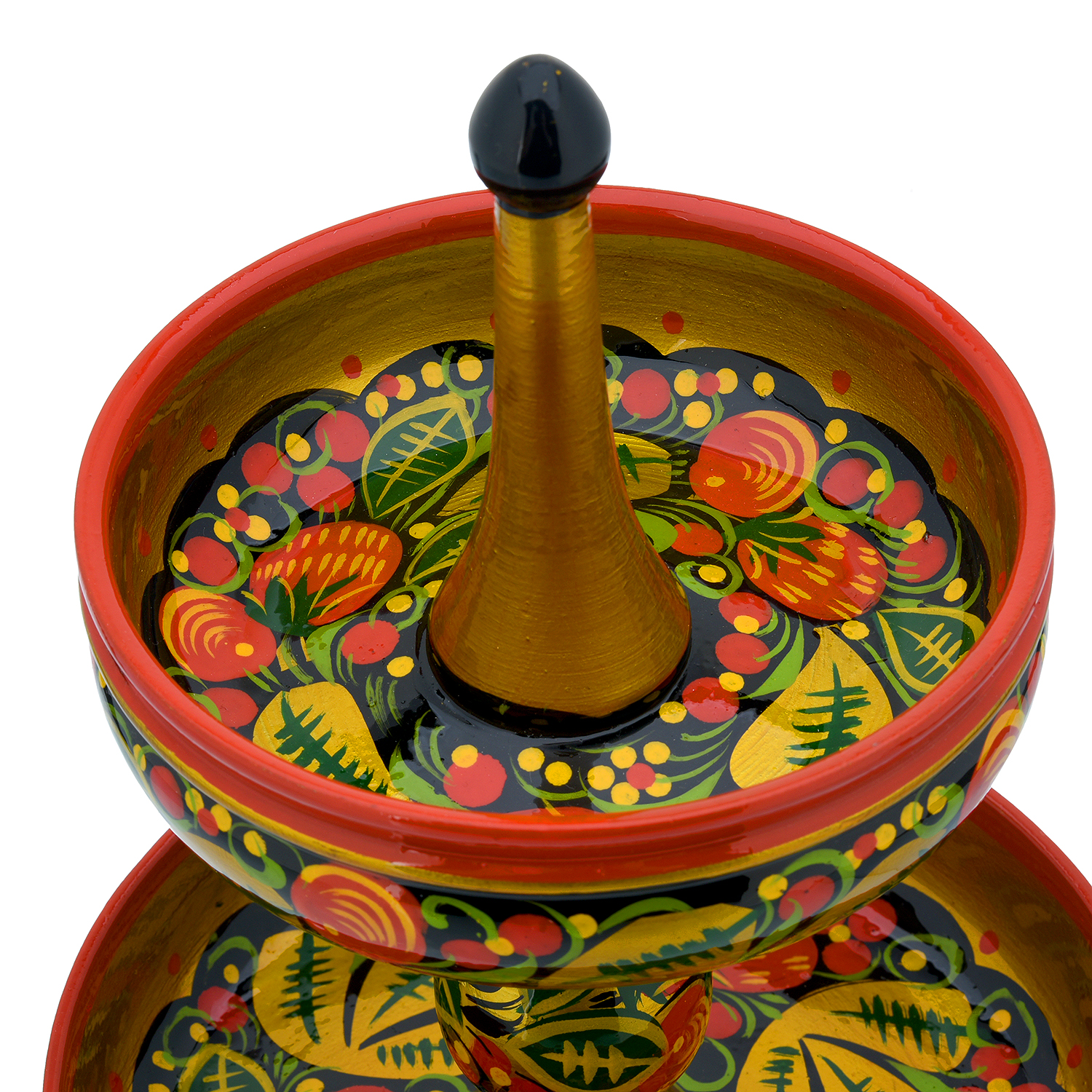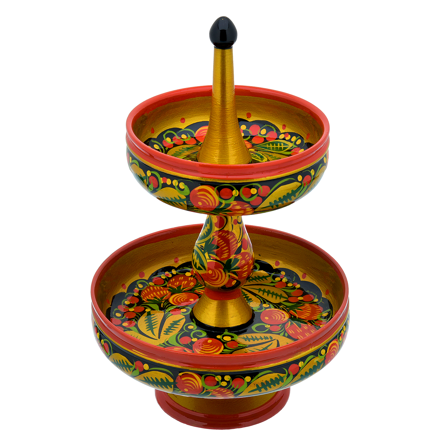 Конфетница двухъярусная "Клубника". Хохлома