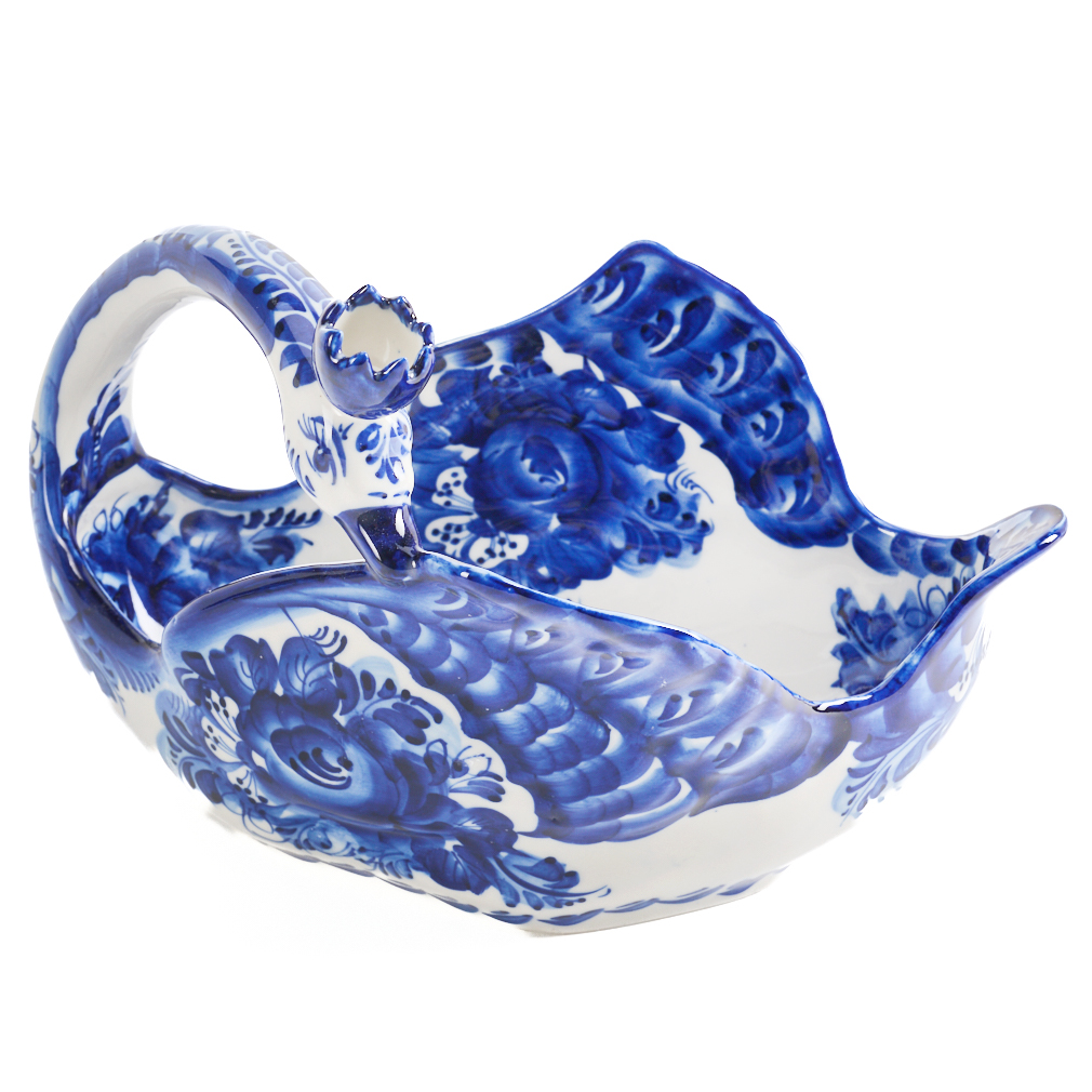 Конфетница "Лебедь". Гжель