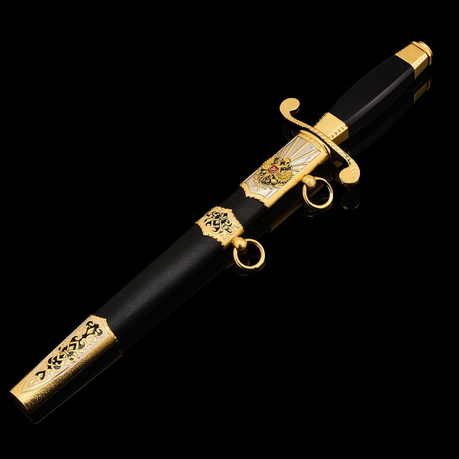 Нож сувенирный с позолотой и эмалью "ВВС". Златоуст.Материалы: сталь ЭИ-107, латунь, никель, золото 999,9*, эмаль, дерево, кожа.