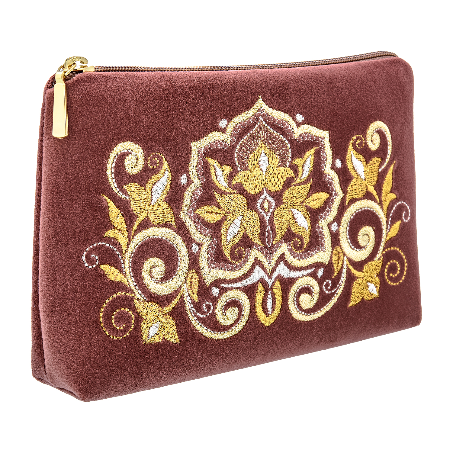 Русские подарки и сувениры → Аксессуары → Косметички → Косметичка бархатная "Каменный цветок". Темно-розовая