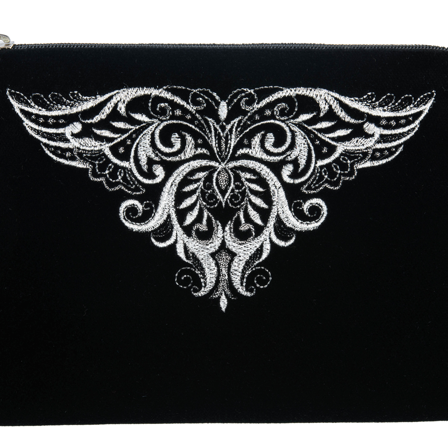 Русские подарки и сувениры → Аксессуары → Косметички → Бархатная косметичка с вышивкой "Бабочка". Черная
