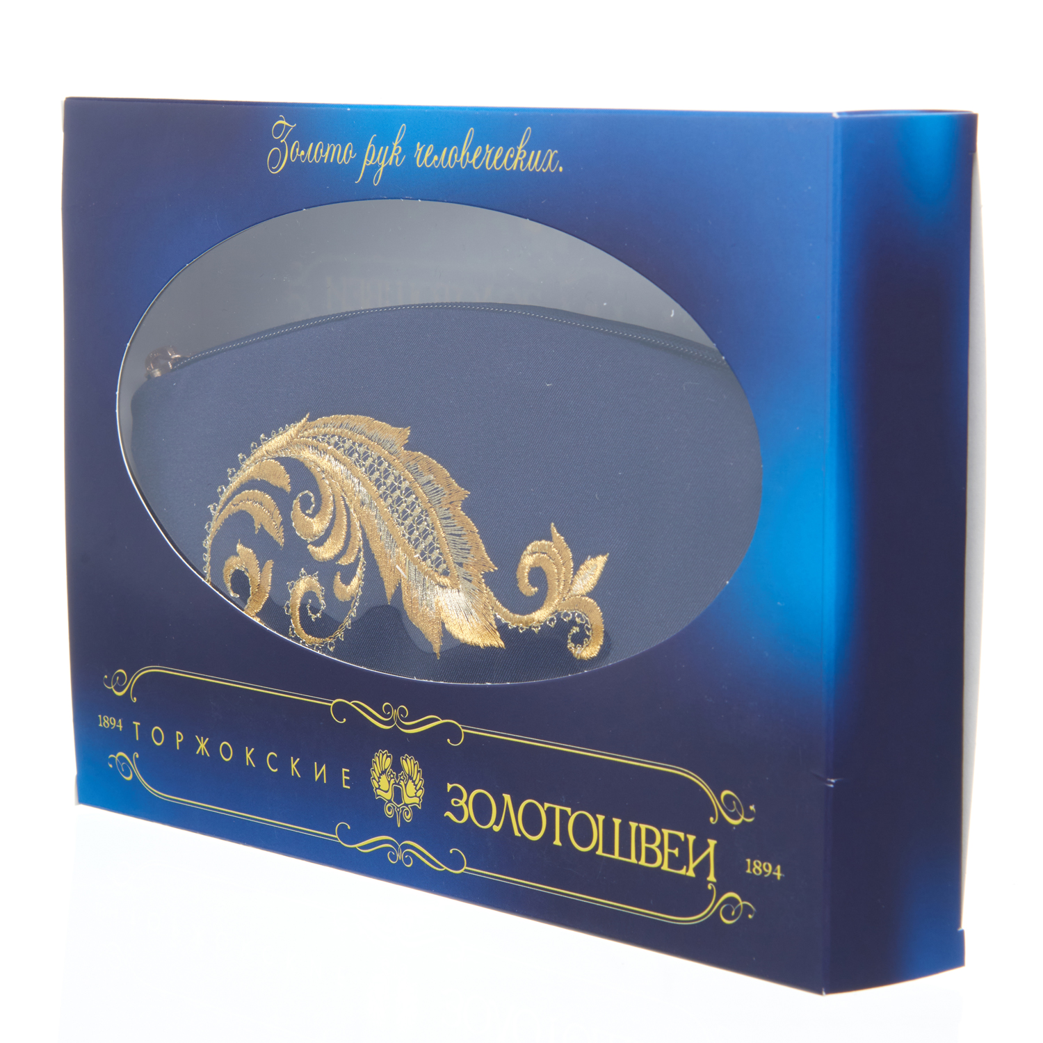 Русские подарки и сувениры → Аксессуары → Косметички → Косметичка "Золото осени". Синяя с золотой вышивкой