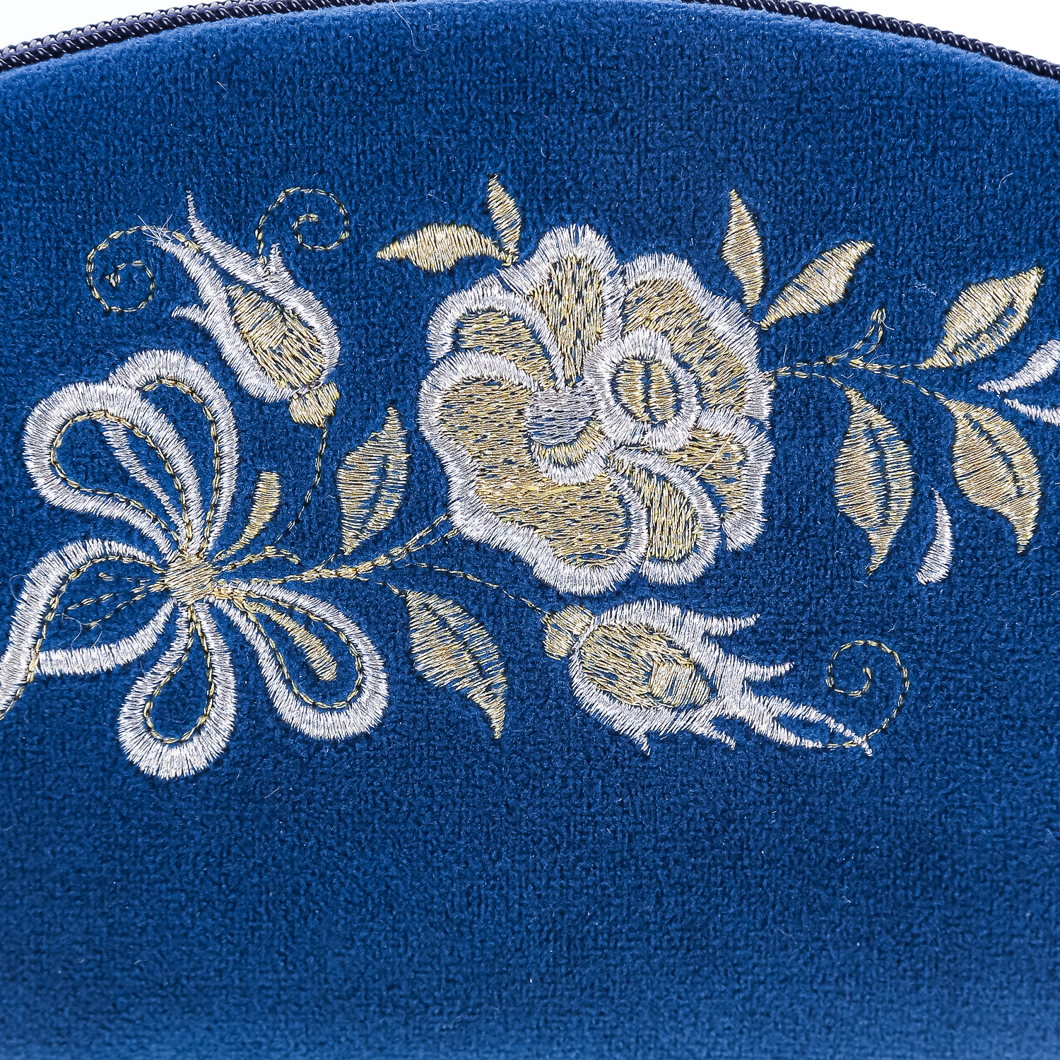 Косметичка бархатная "Счастье". Темно-синяя с вышивкой