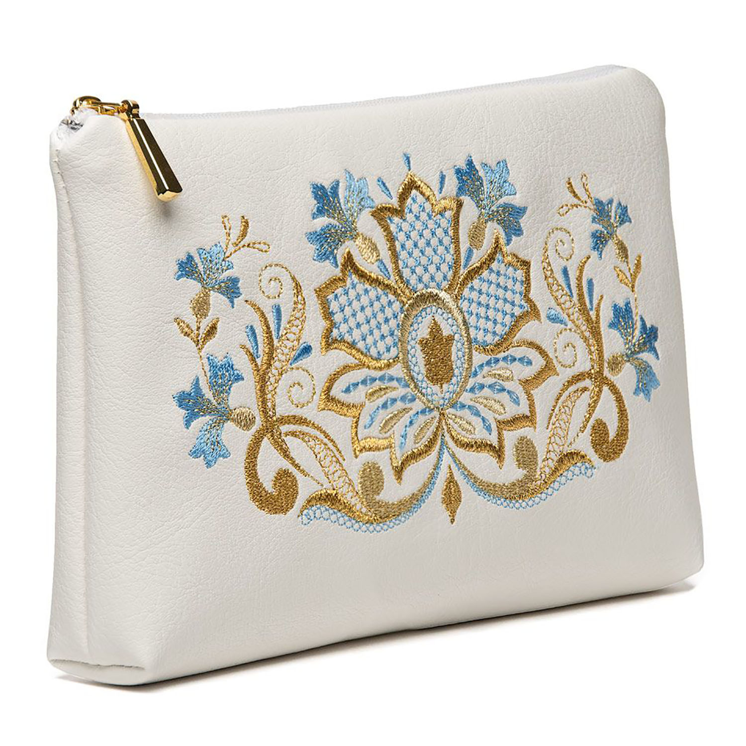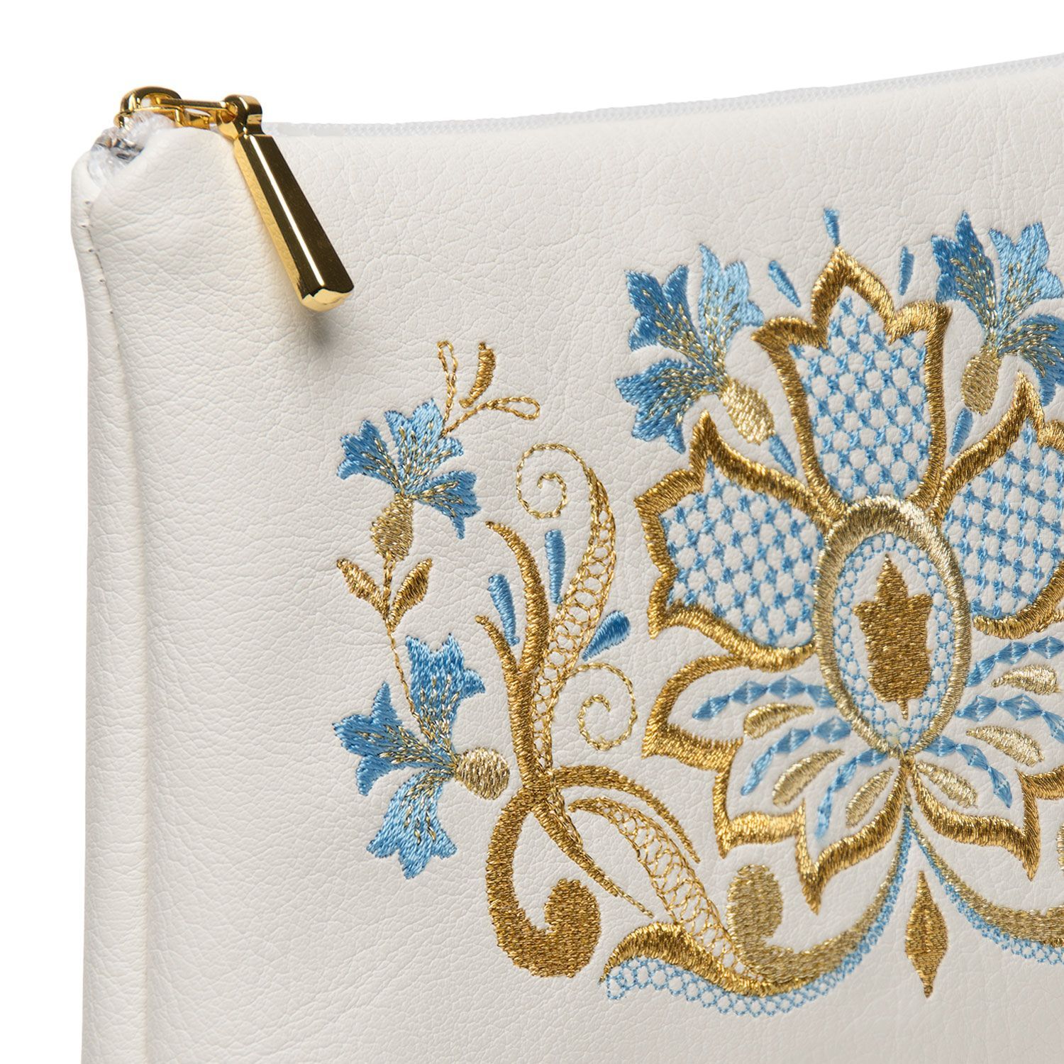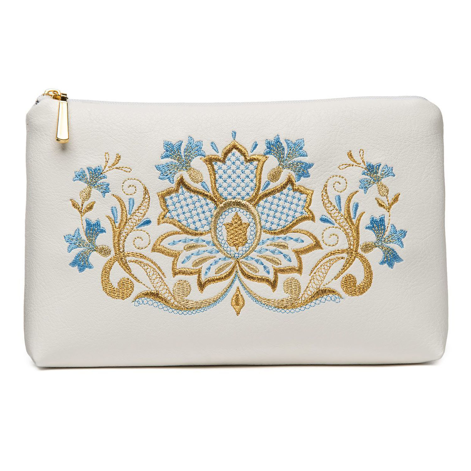 Косметичка кожаная с вышивкой "Васильки". Белая