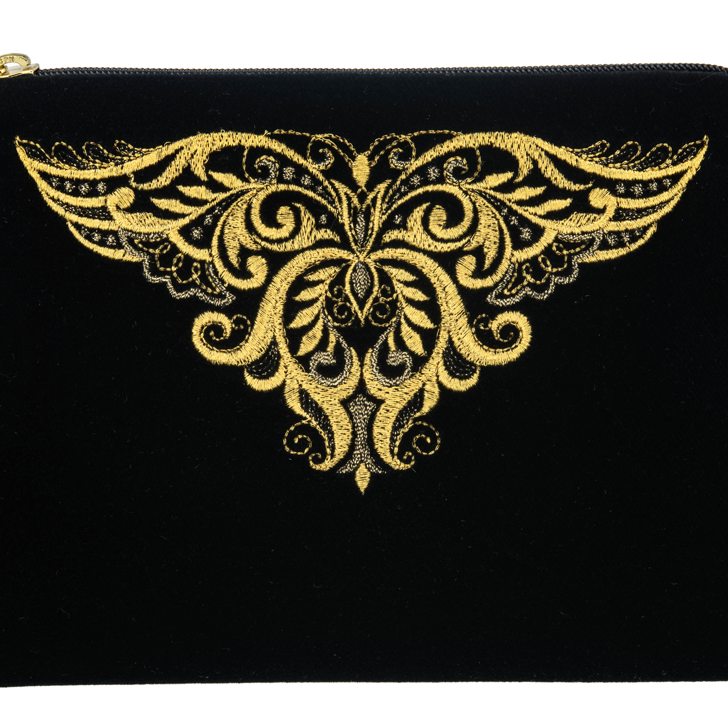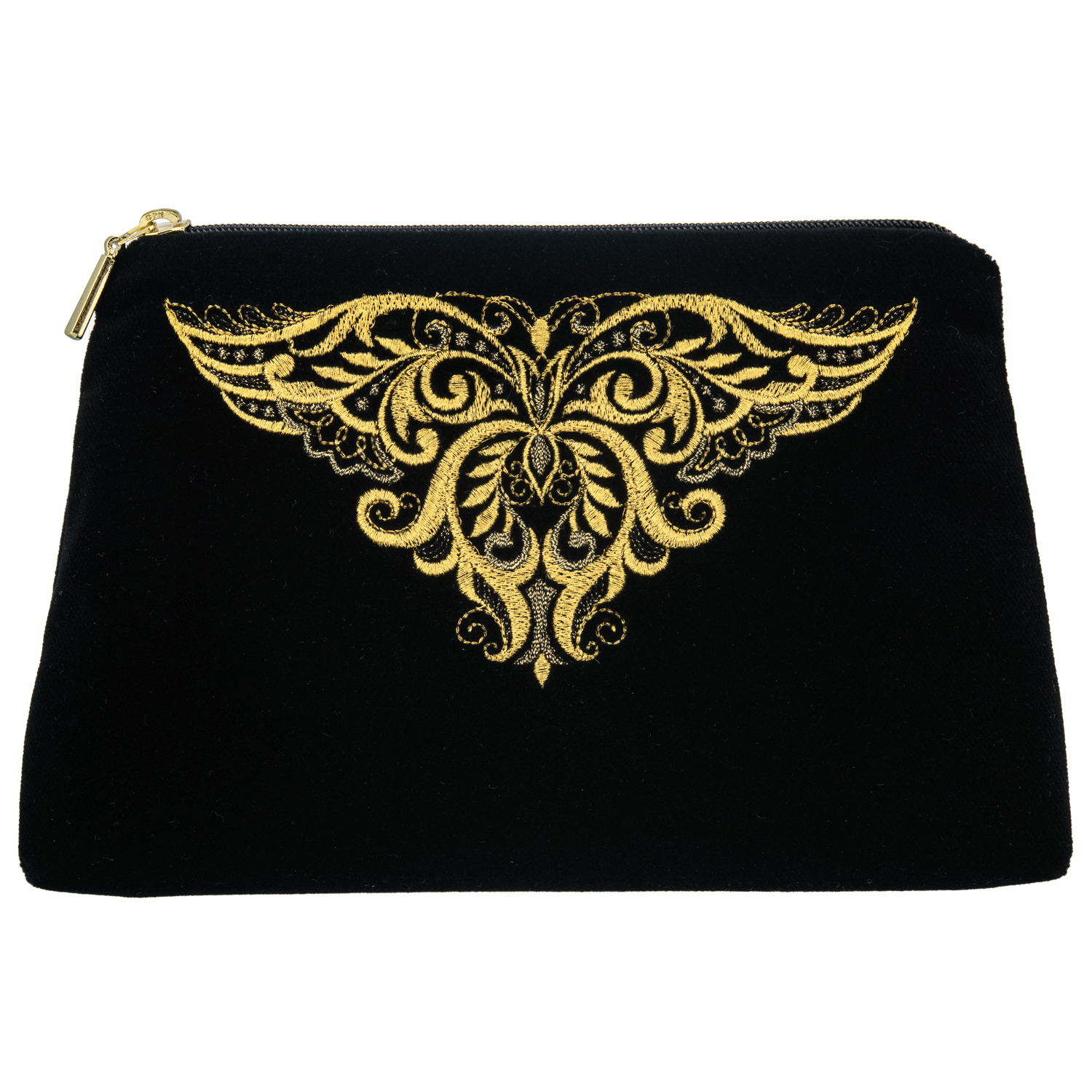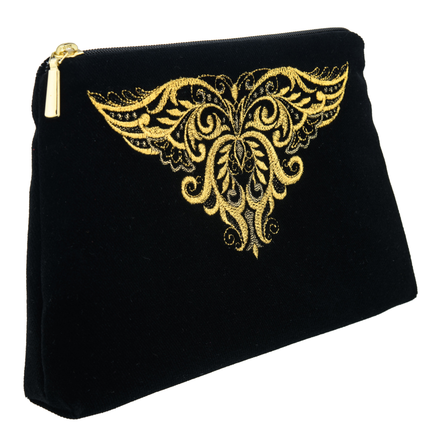 Русские подарки и сувениры → Аксессуары → Косметички → Бархатная косметичка с вышивкой "Бабочка". Черная