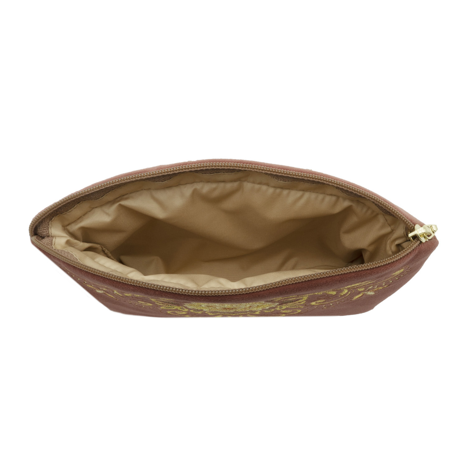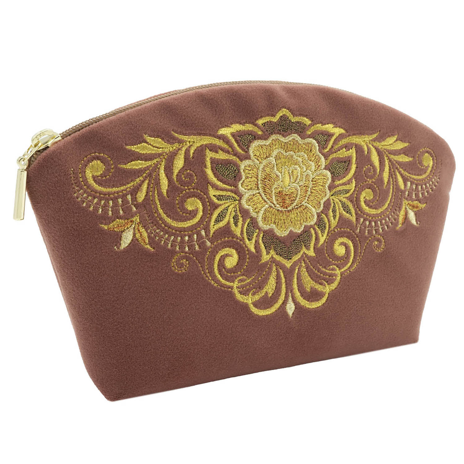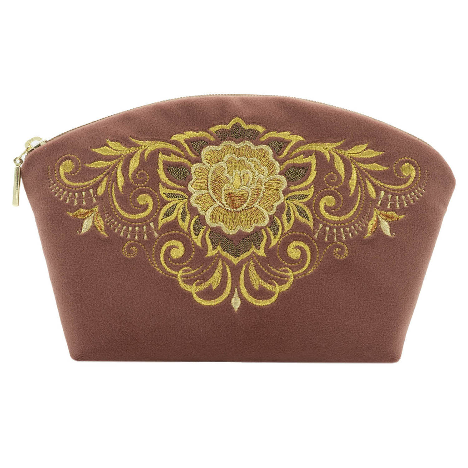Косметичка "Роза". Темно-розовая с вышивкой.Материалы: велюр, полиэстер.