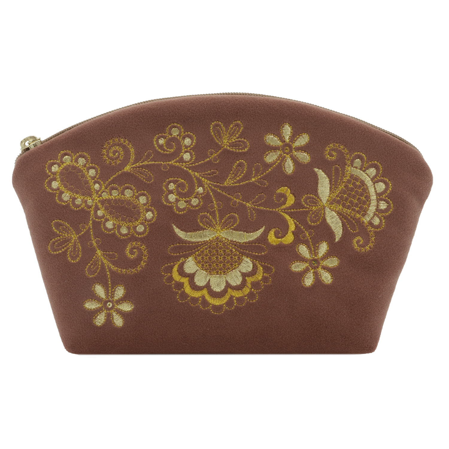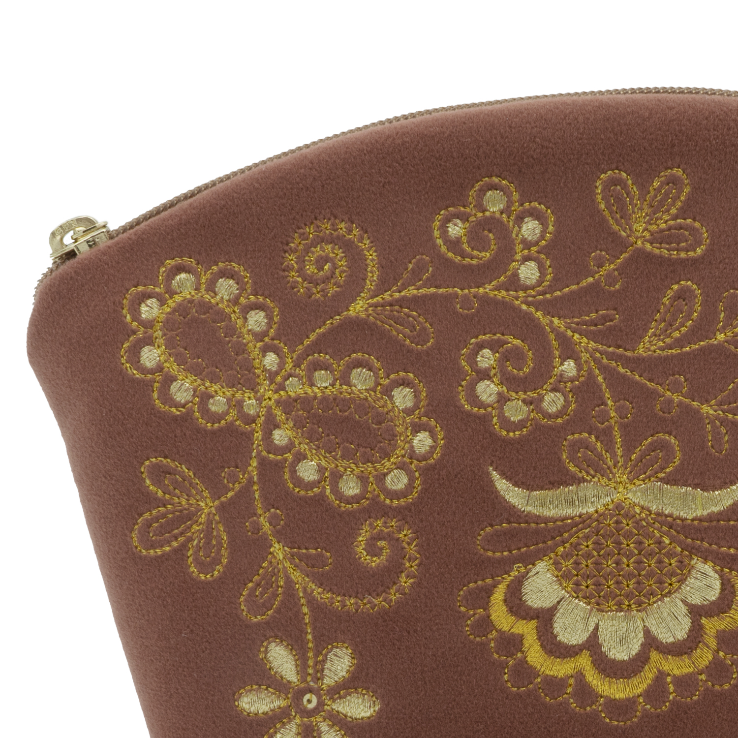 Косметичка "Цветы". Темно-розовая с вышивкой