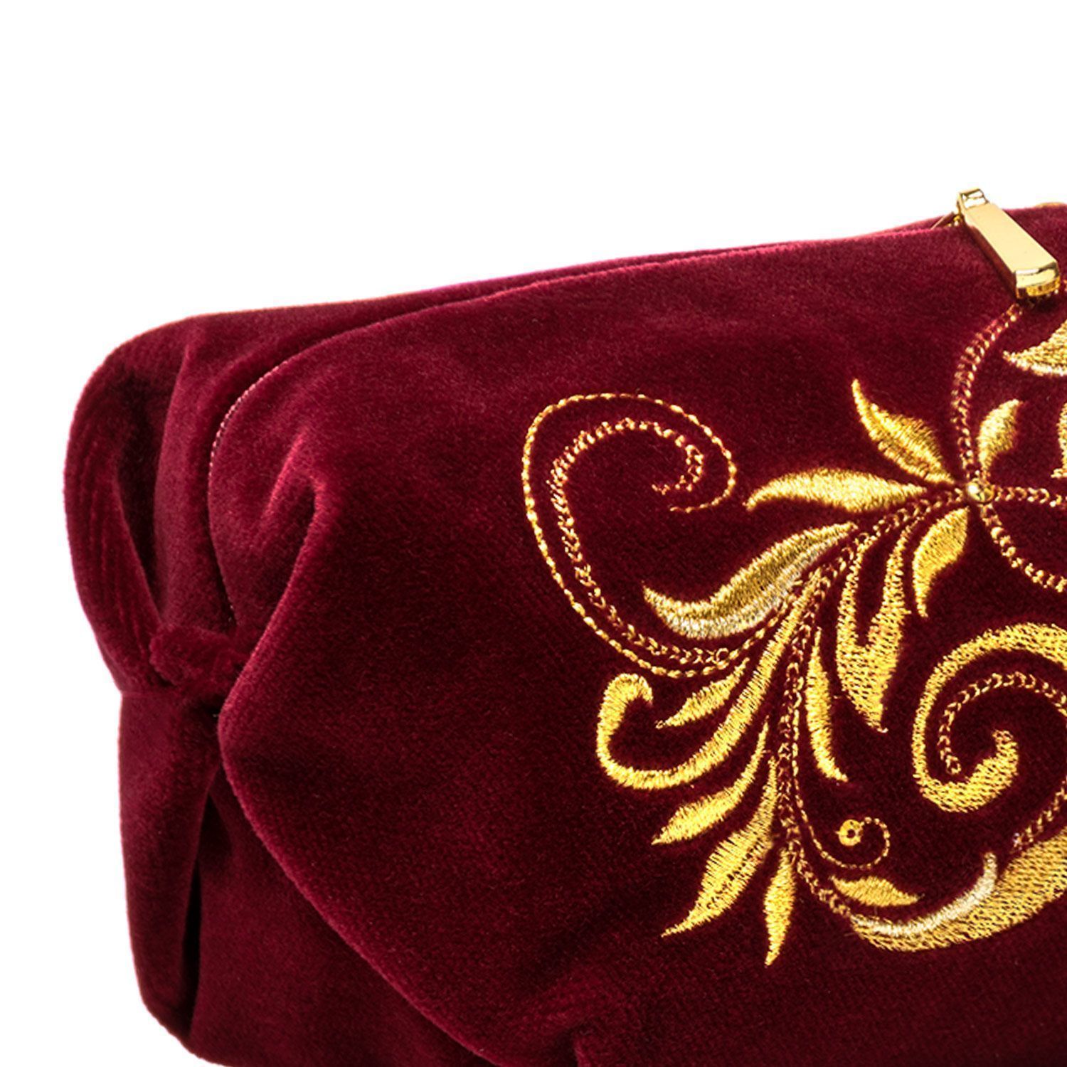 Косметичка "Листопад". Бордовая с вышивкой.Материалы: бархат, полиэстер.