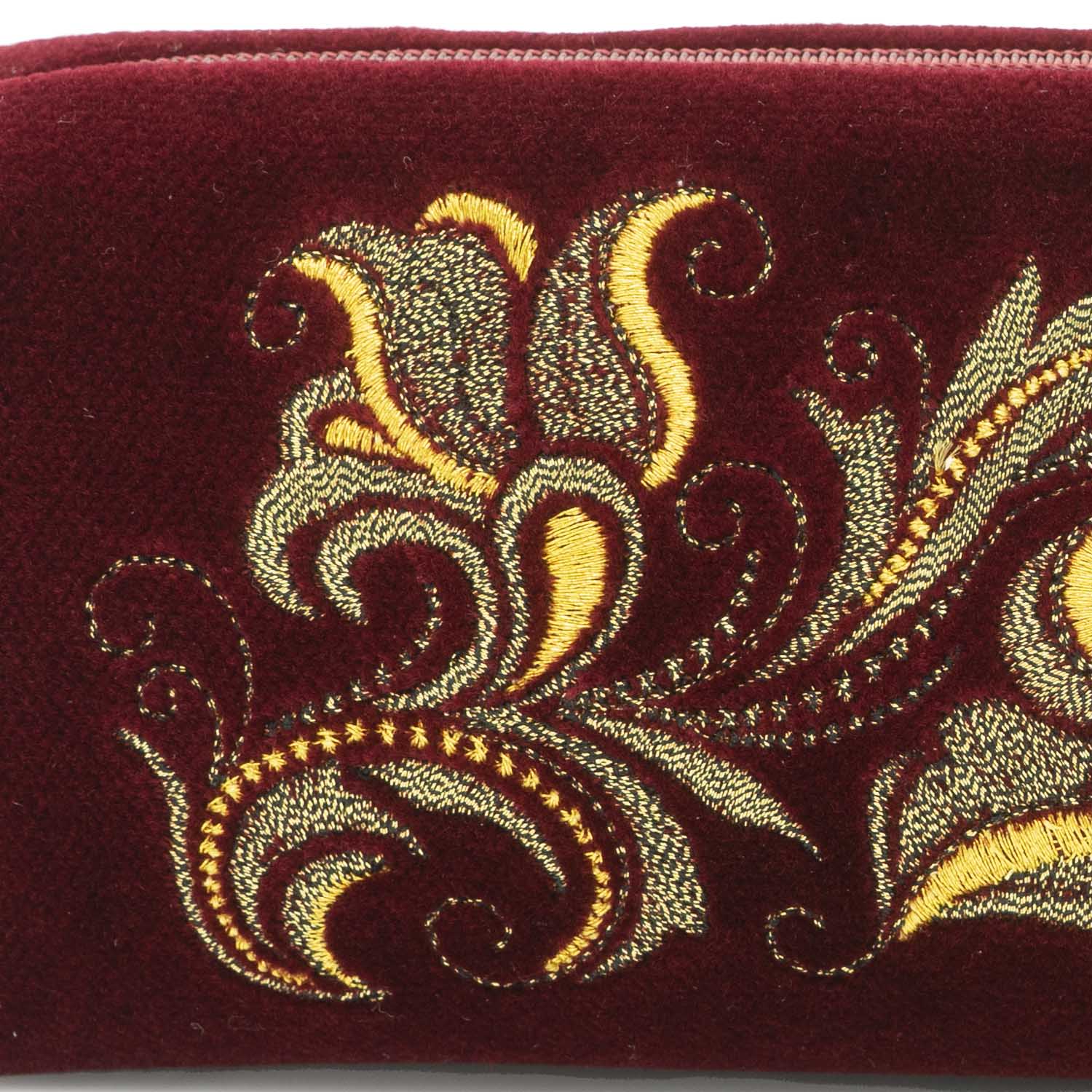 Косметичка "Светлана". Бордовая с вышивкой.Материалы: бархат, полиэстер.