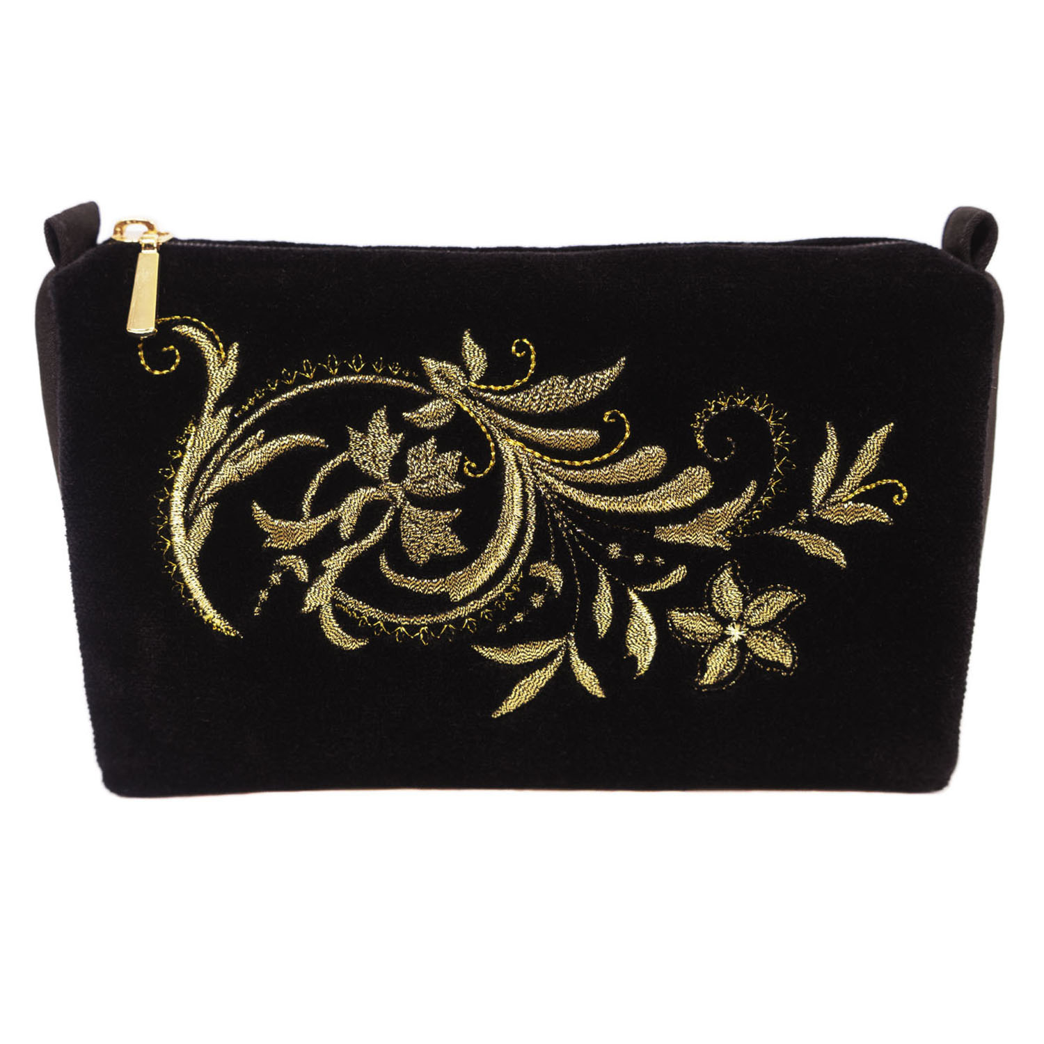Косметичка "Узоры". Черная с вышивкой.Материалы: бархат, полиэстер.