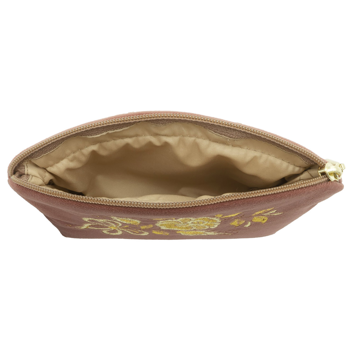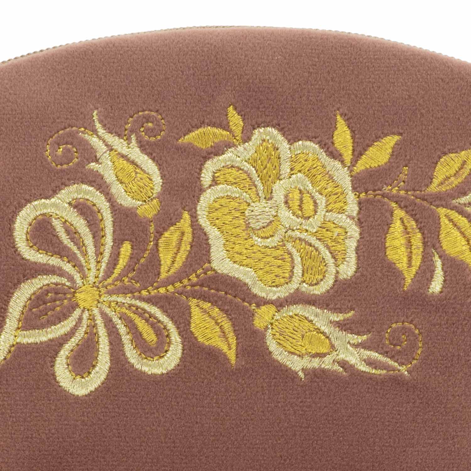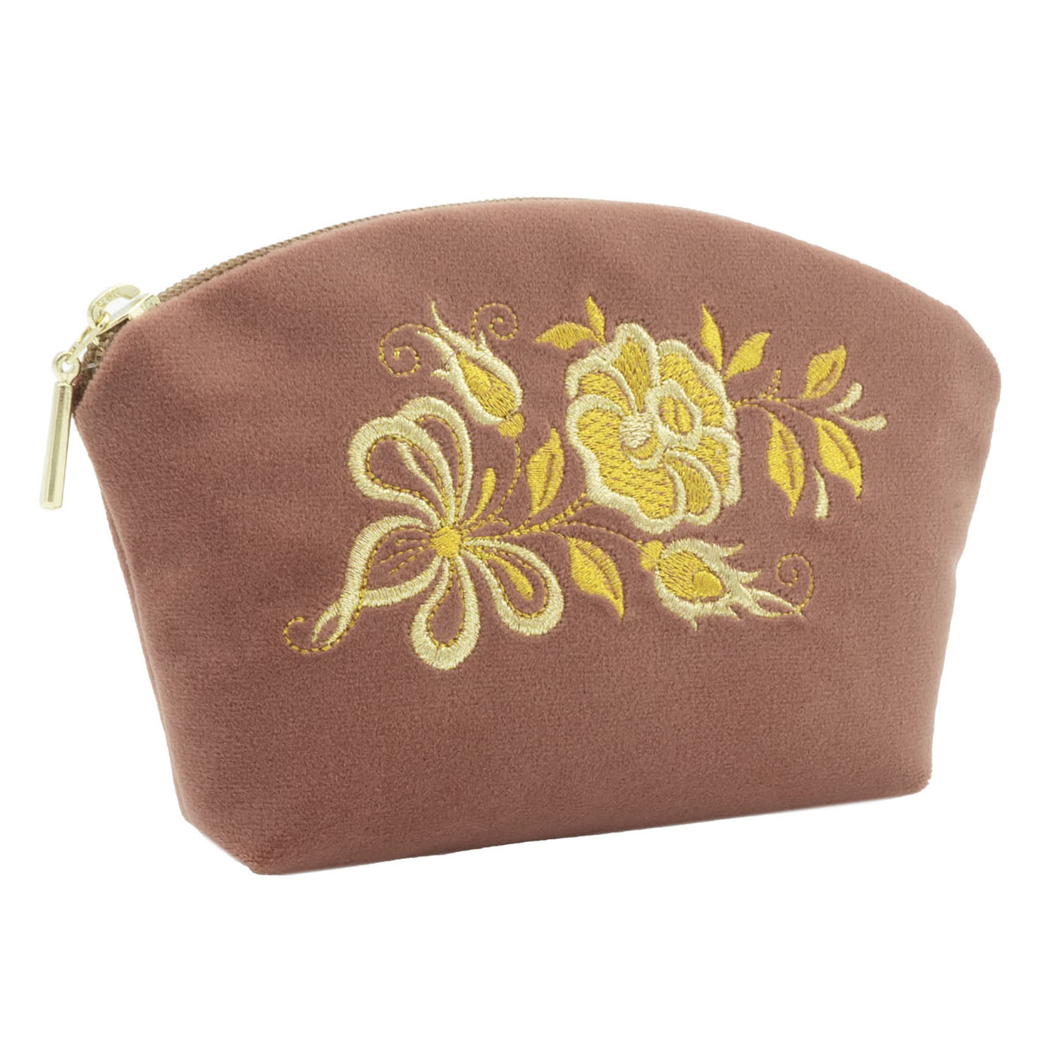 Косметичка "Счастье". Темно-розовая с вышивкой.Материалы: велюр, полиэстер.