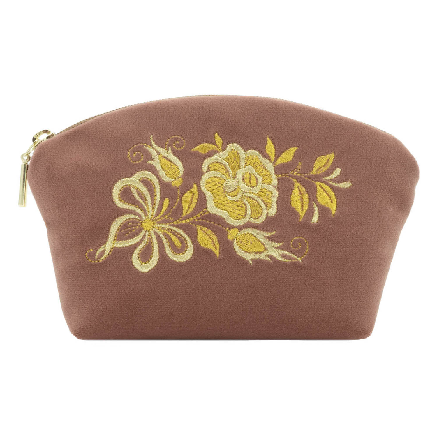 Косметичка "Счастье". Темно-розовая с вышивкой