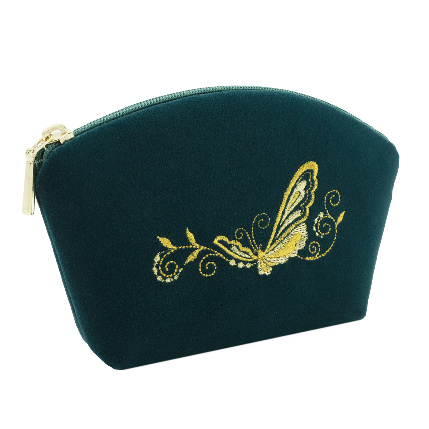 Косметичка "Бабочка". Цвет морской волны с вышивкой.Материалы: велюр, полиэстер.