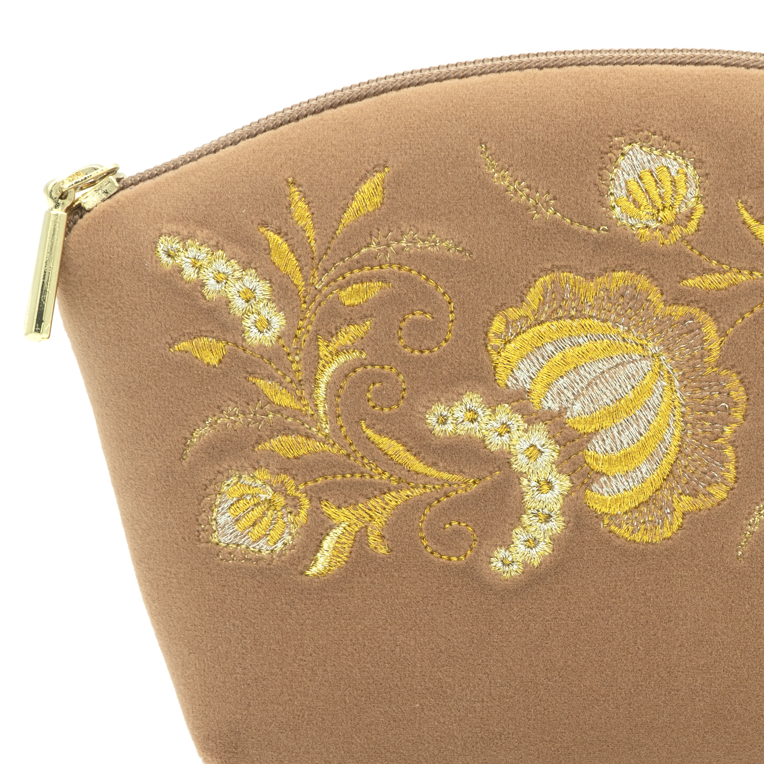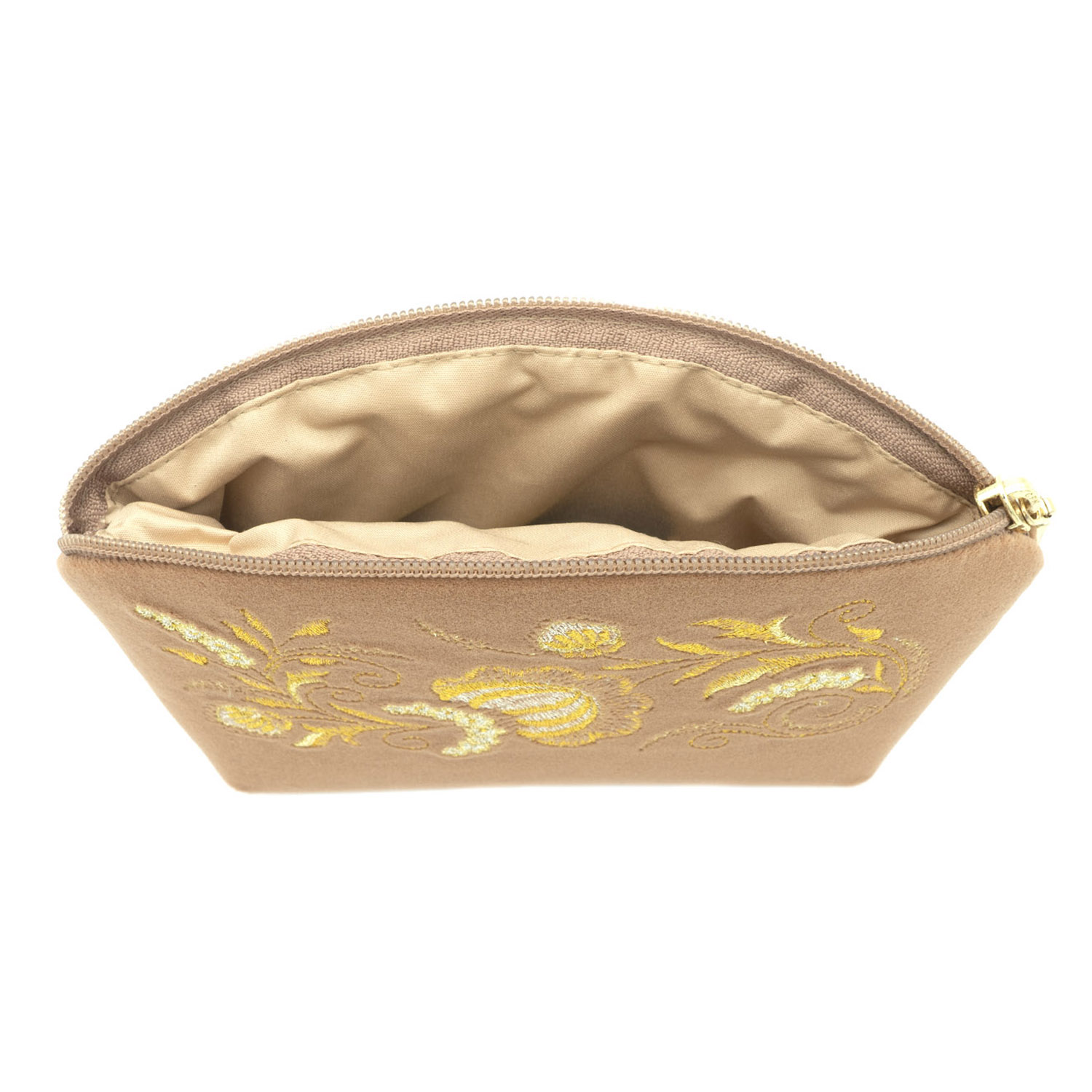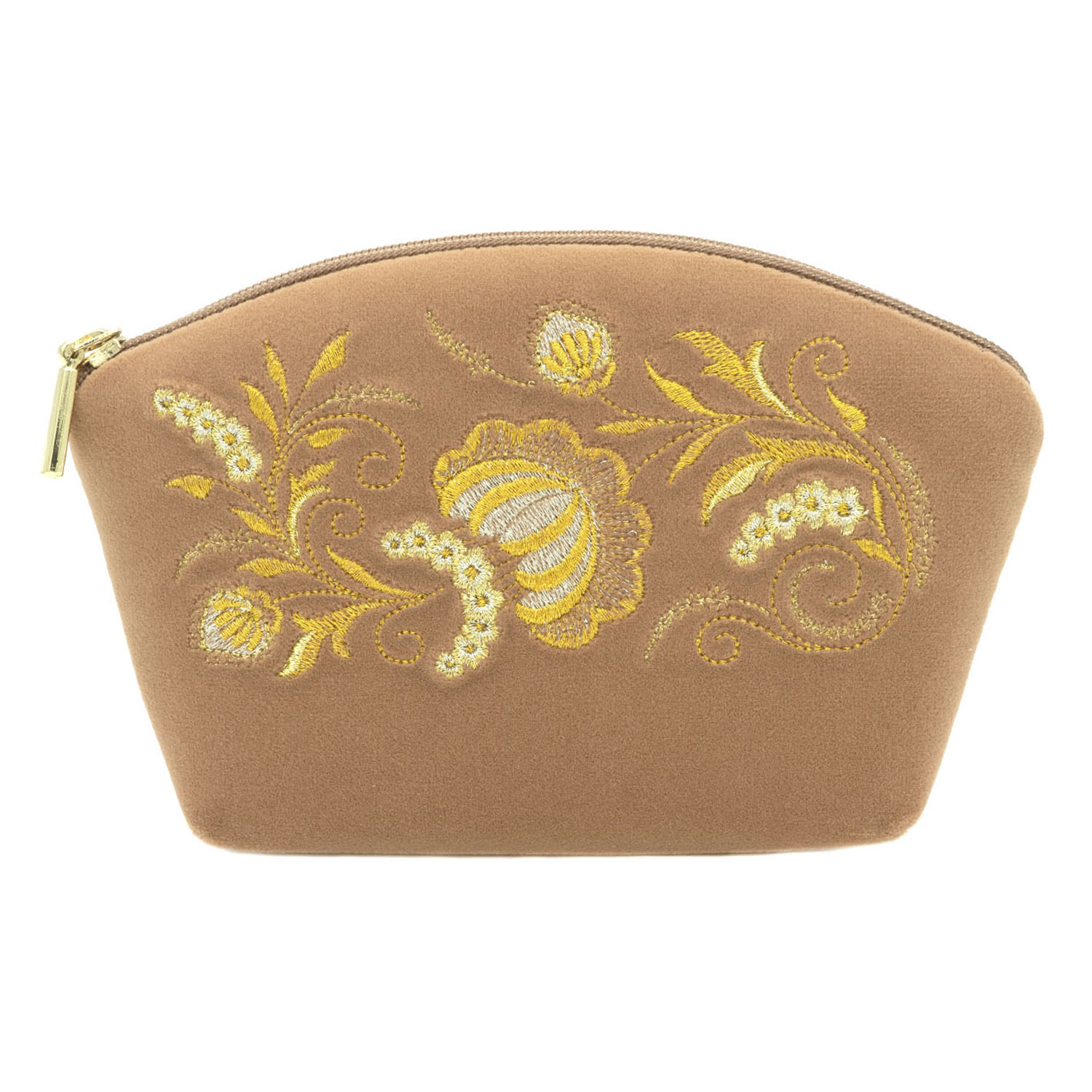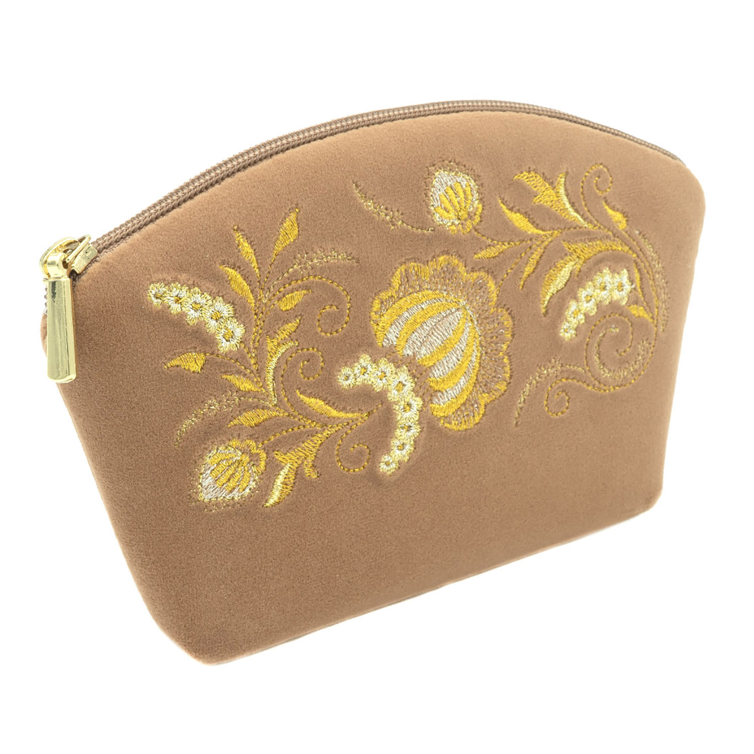 Косметичка "Серенада". Бежевая с вышивкой.Материалы: велюр, полиэстер.