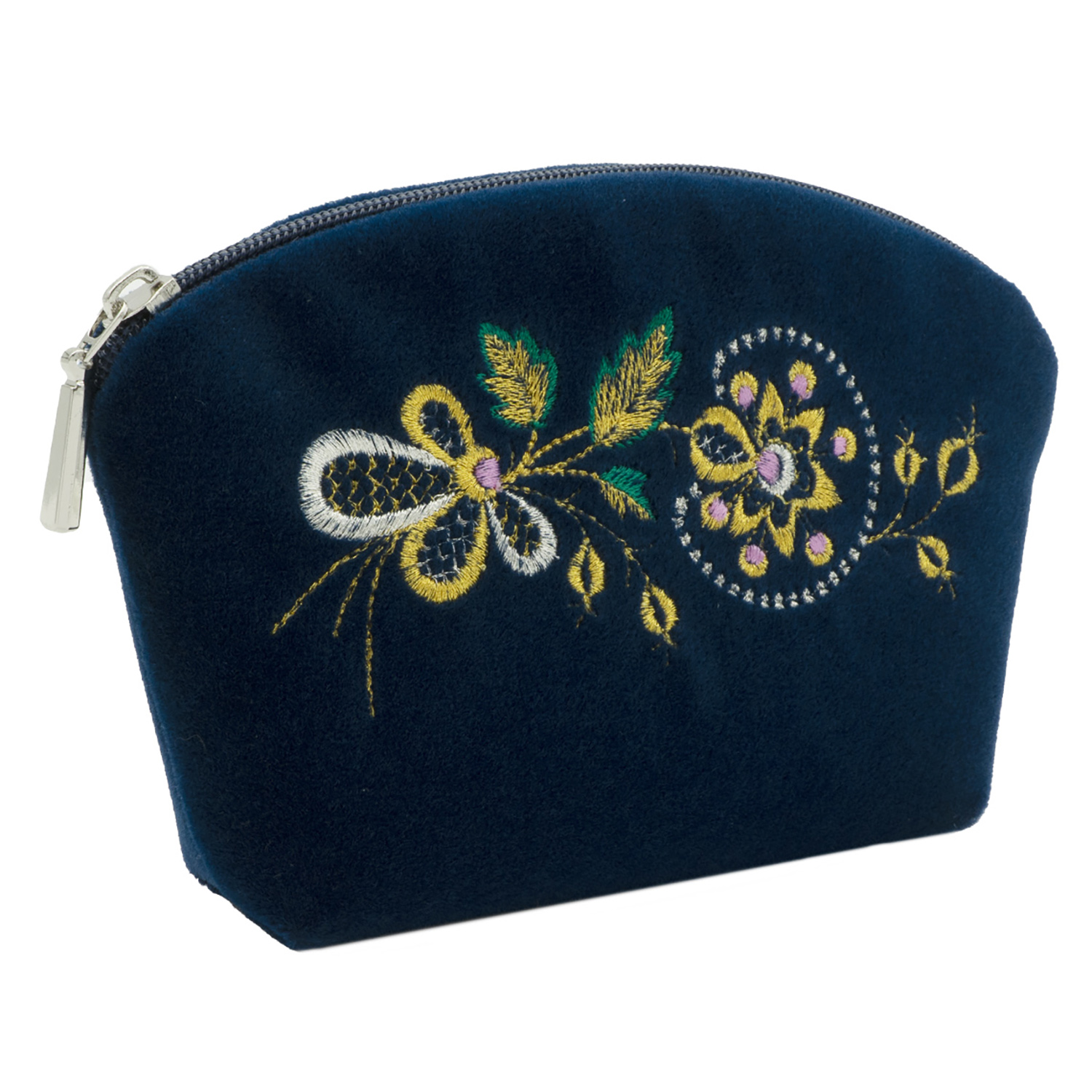 Косметичка "Заря". Темно-синяя с вышивкой.Материалы: велюр, полиэстер.