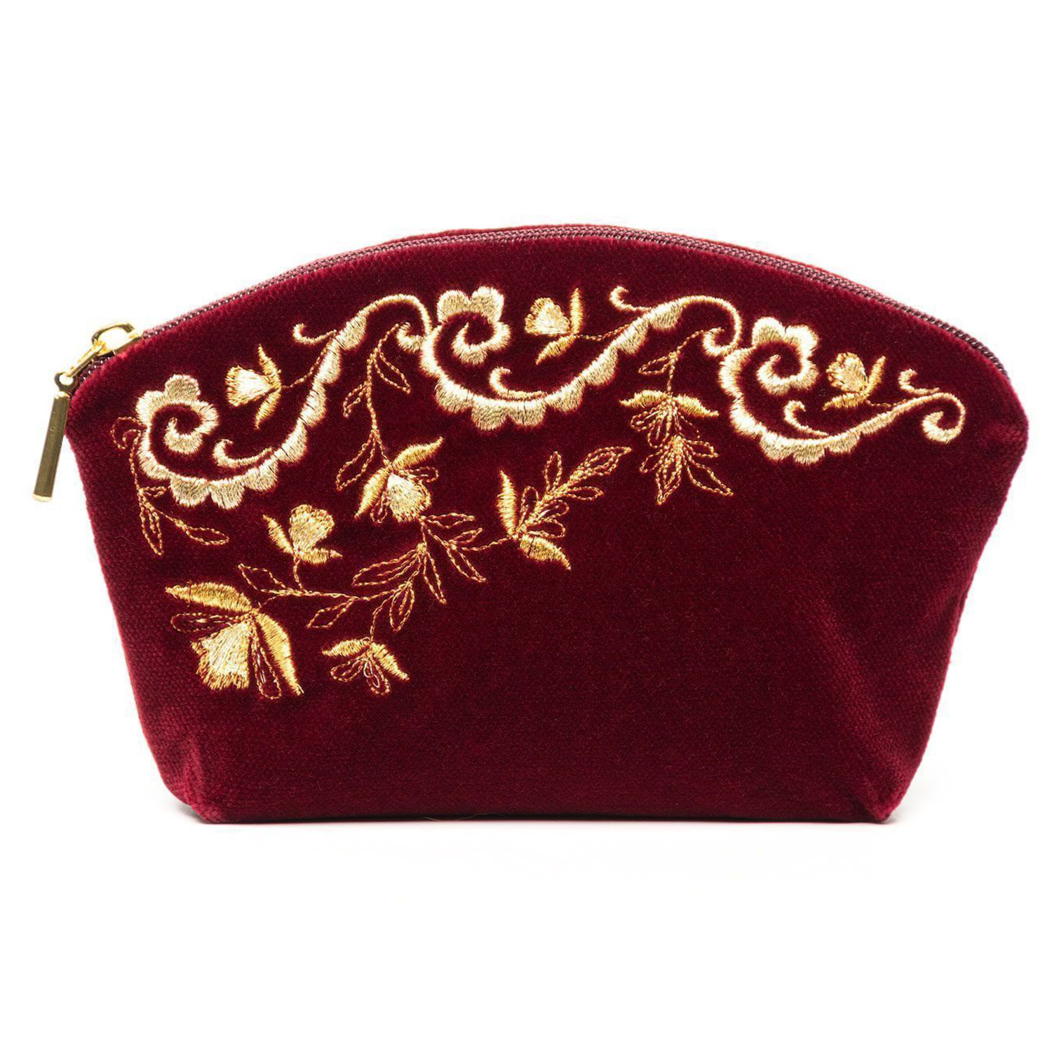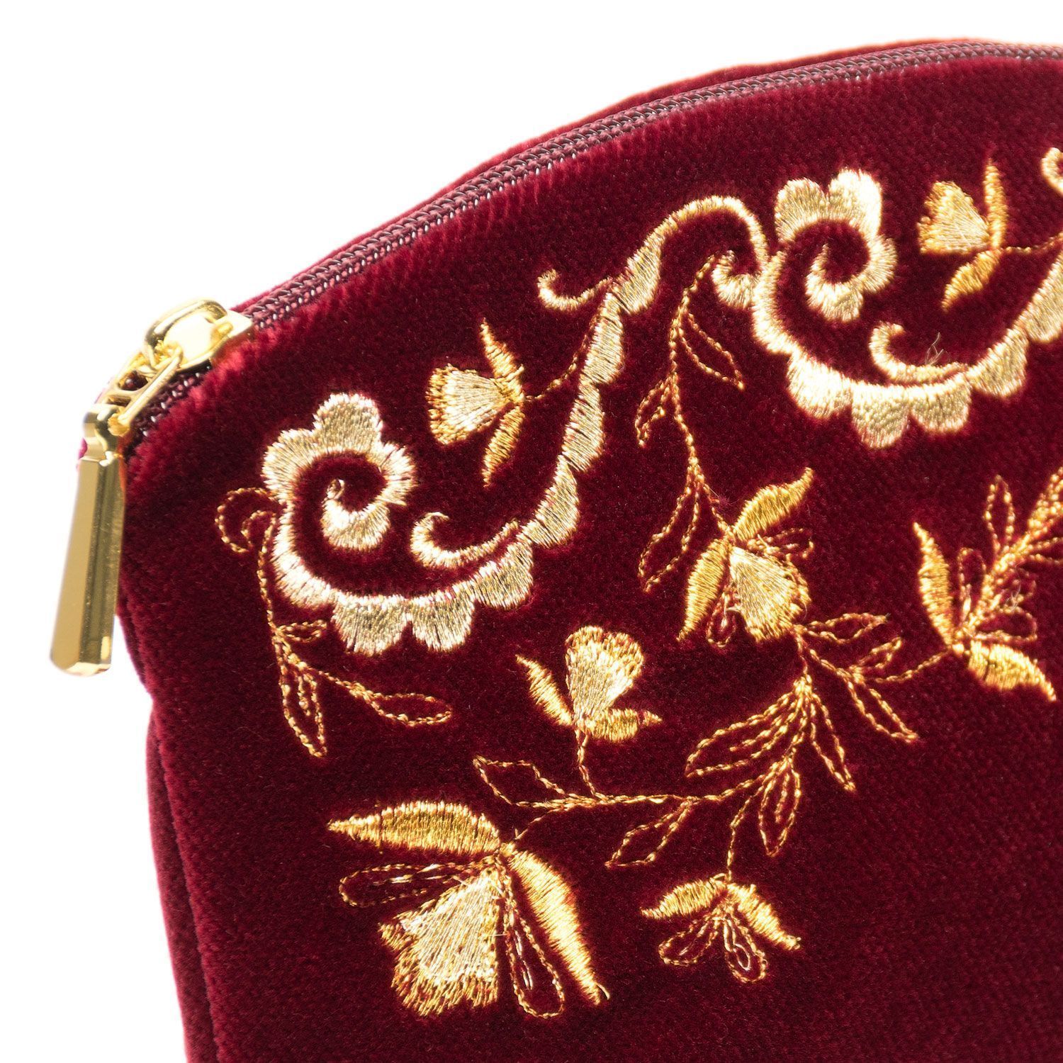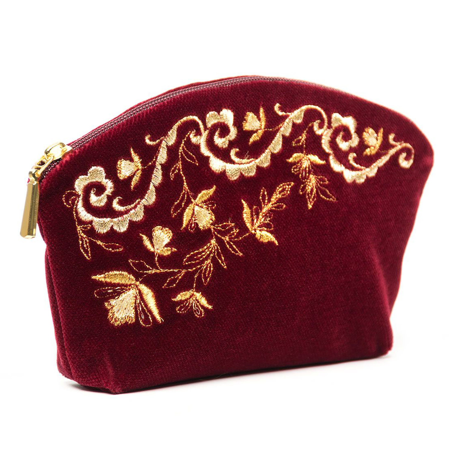 Косметичка "Нефертити". Бордовая с вышивкой.Материалы: велюр, полиэстер.