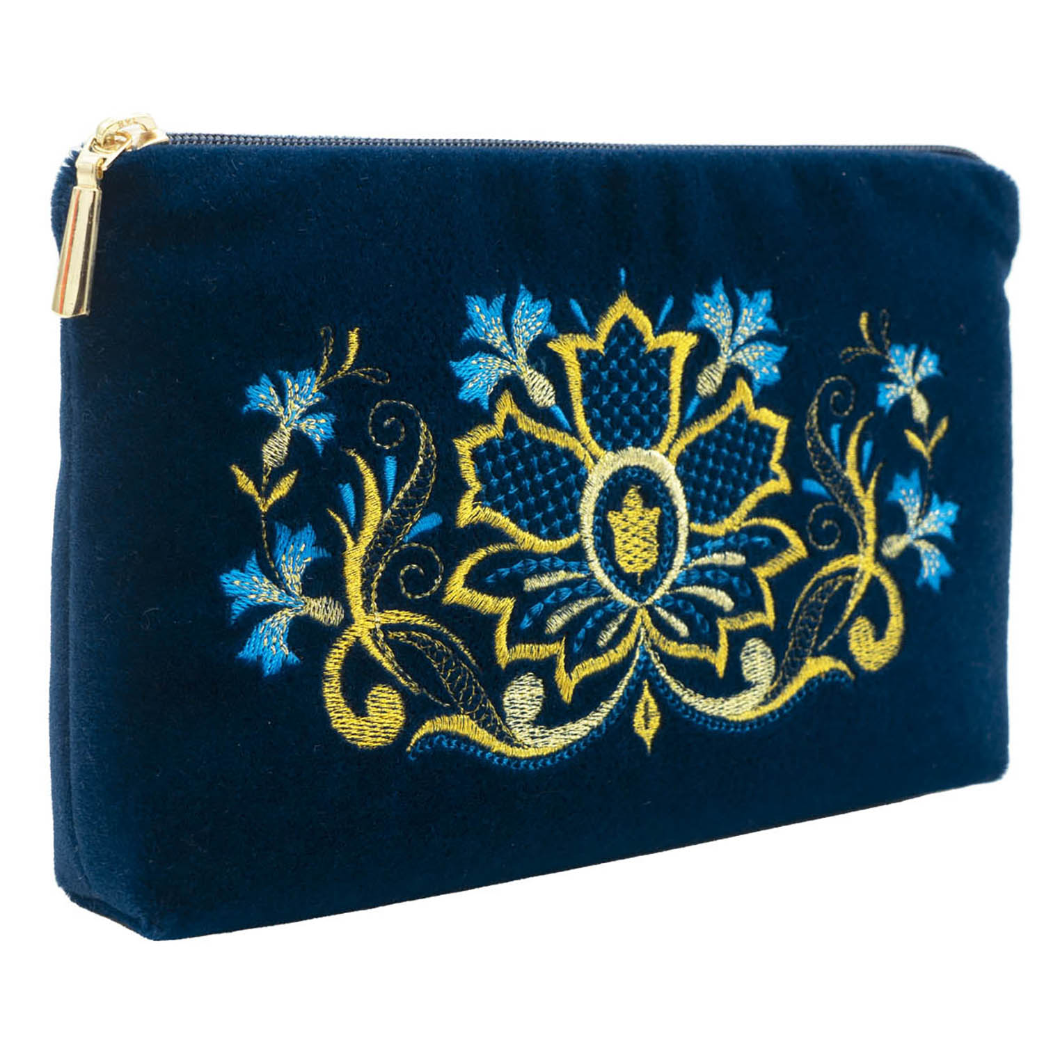 Косметичка "Аромат васильков". Тамно-синяя с вышивкой.Материалы: велюр, полиэстер.