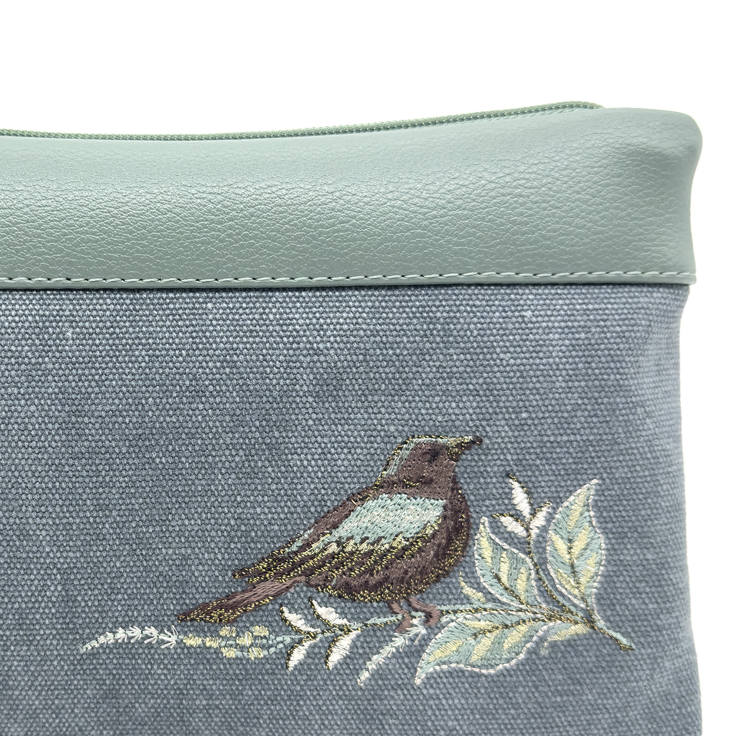 Косметичка "Летний сад". Цвет морской волны с вышивкой