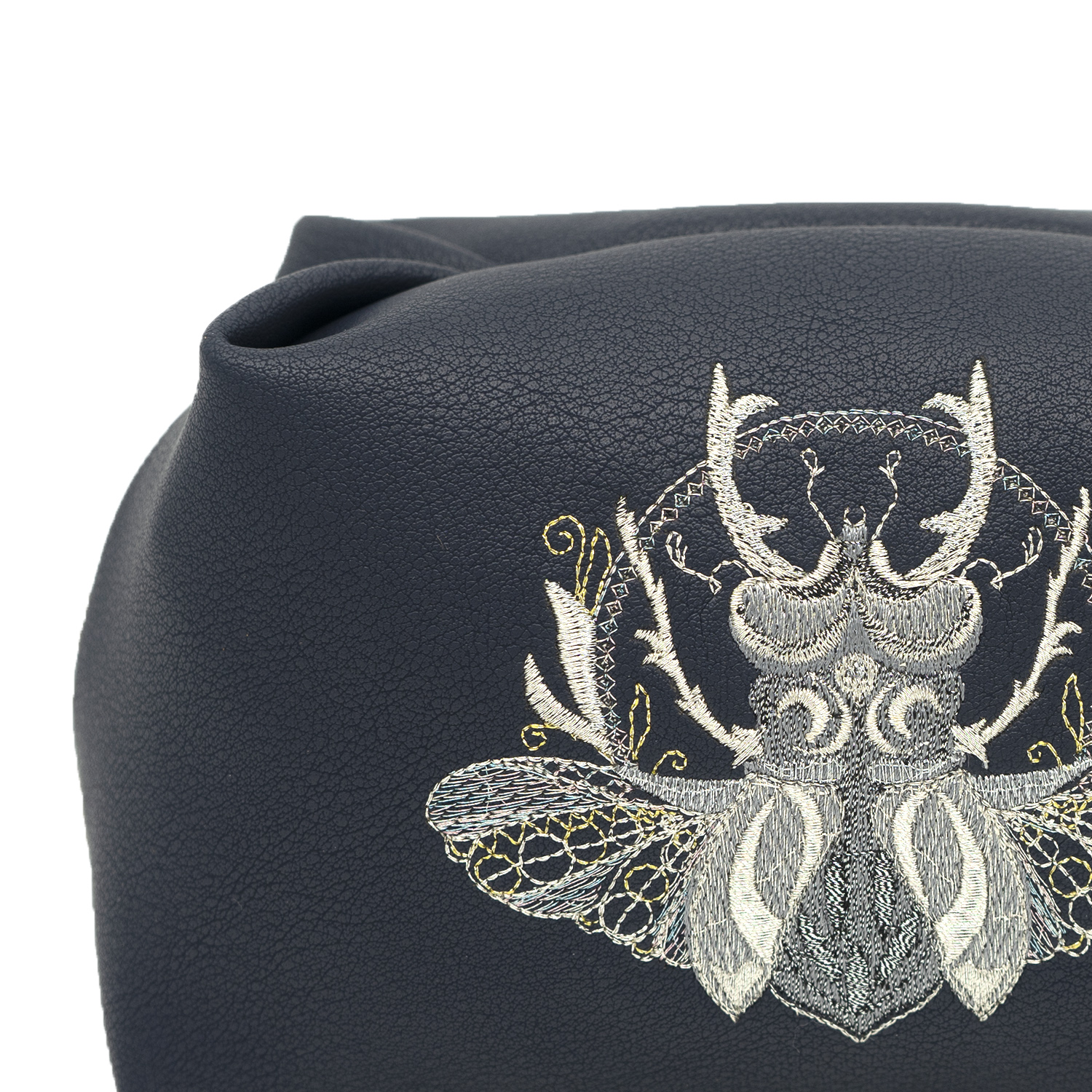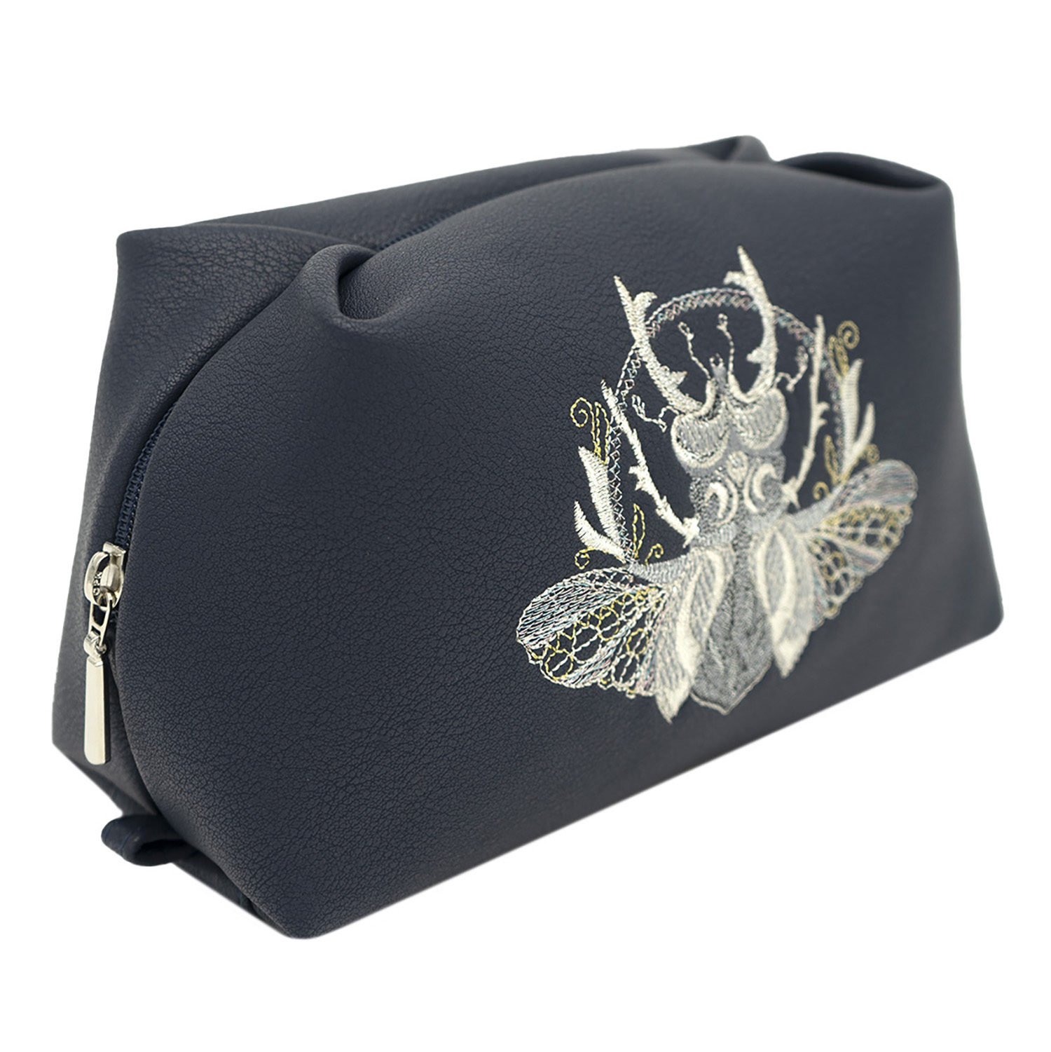 Косметичка "Жук". Синяя с вышивкой.Материалы: искусственная кожа, полиэстер.