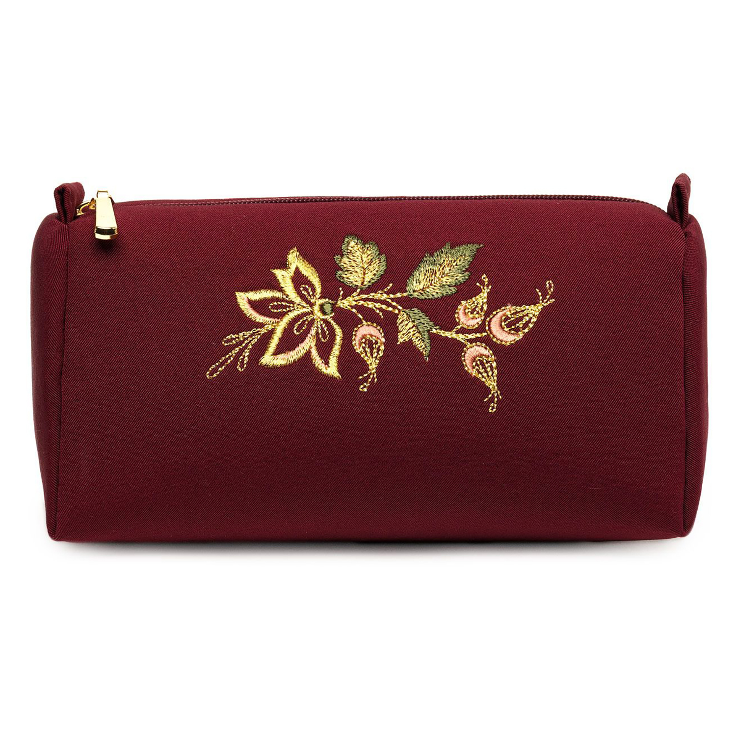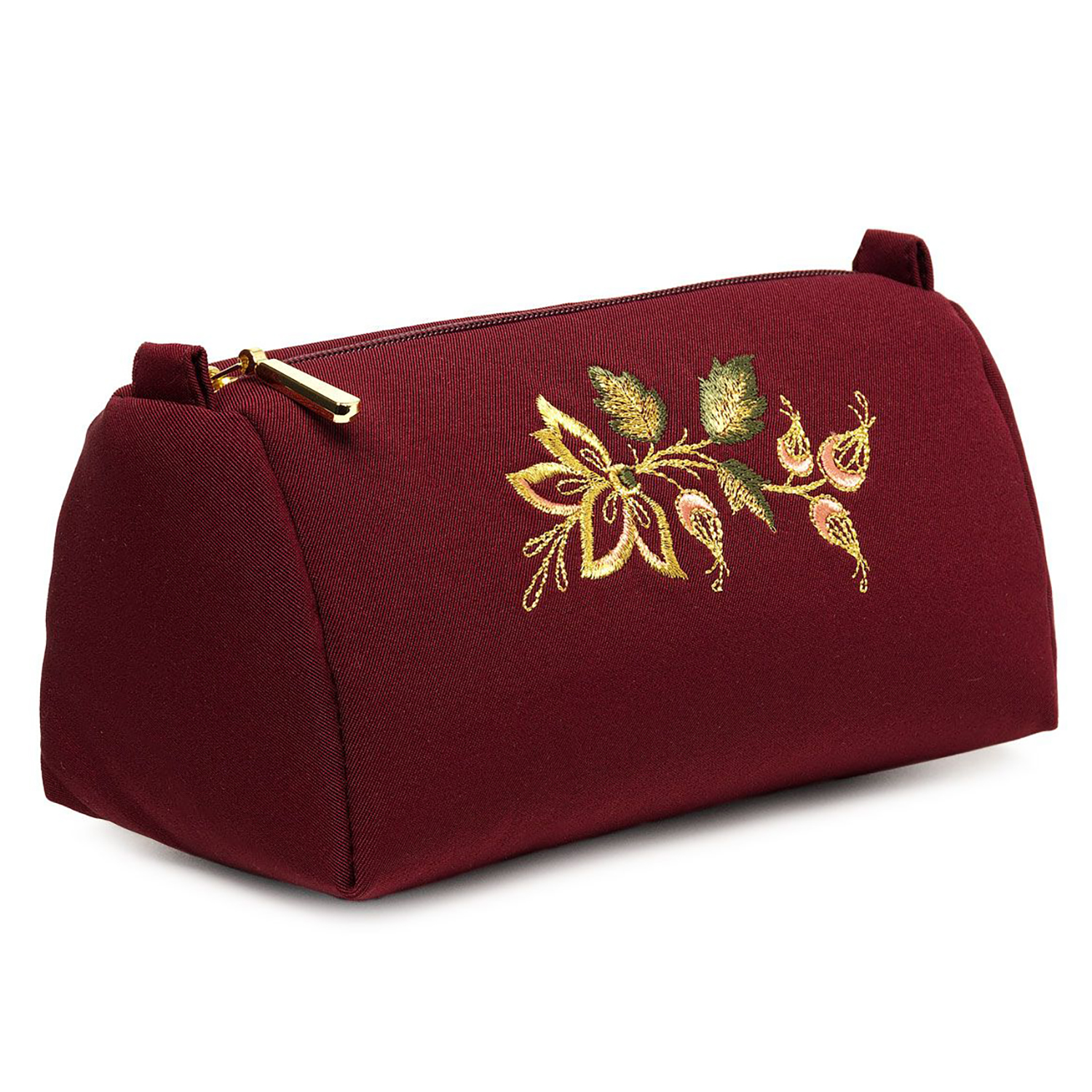 Косметичка "Шиповник". Бордовая с вышивкой.Материалы: костюмная ткань, полиэстер.