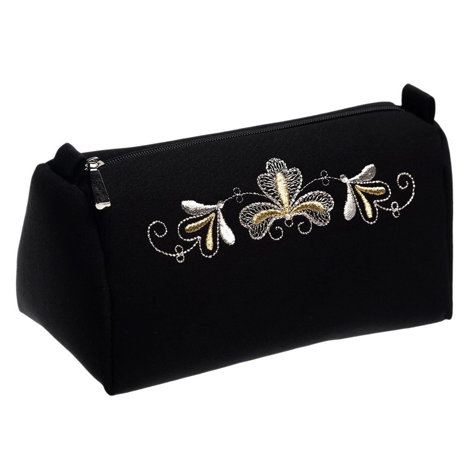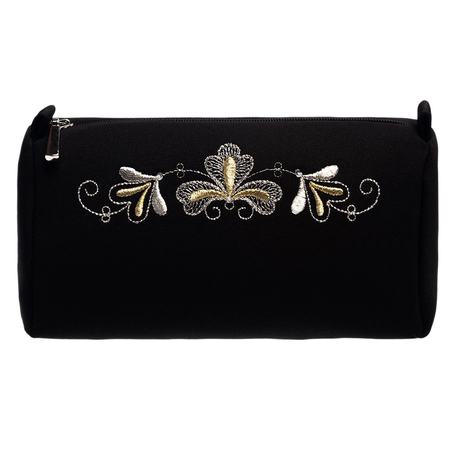 Косметичка "Листопад". Черная с вышивкой.Материалы: костюмная ткань, полиэстер.