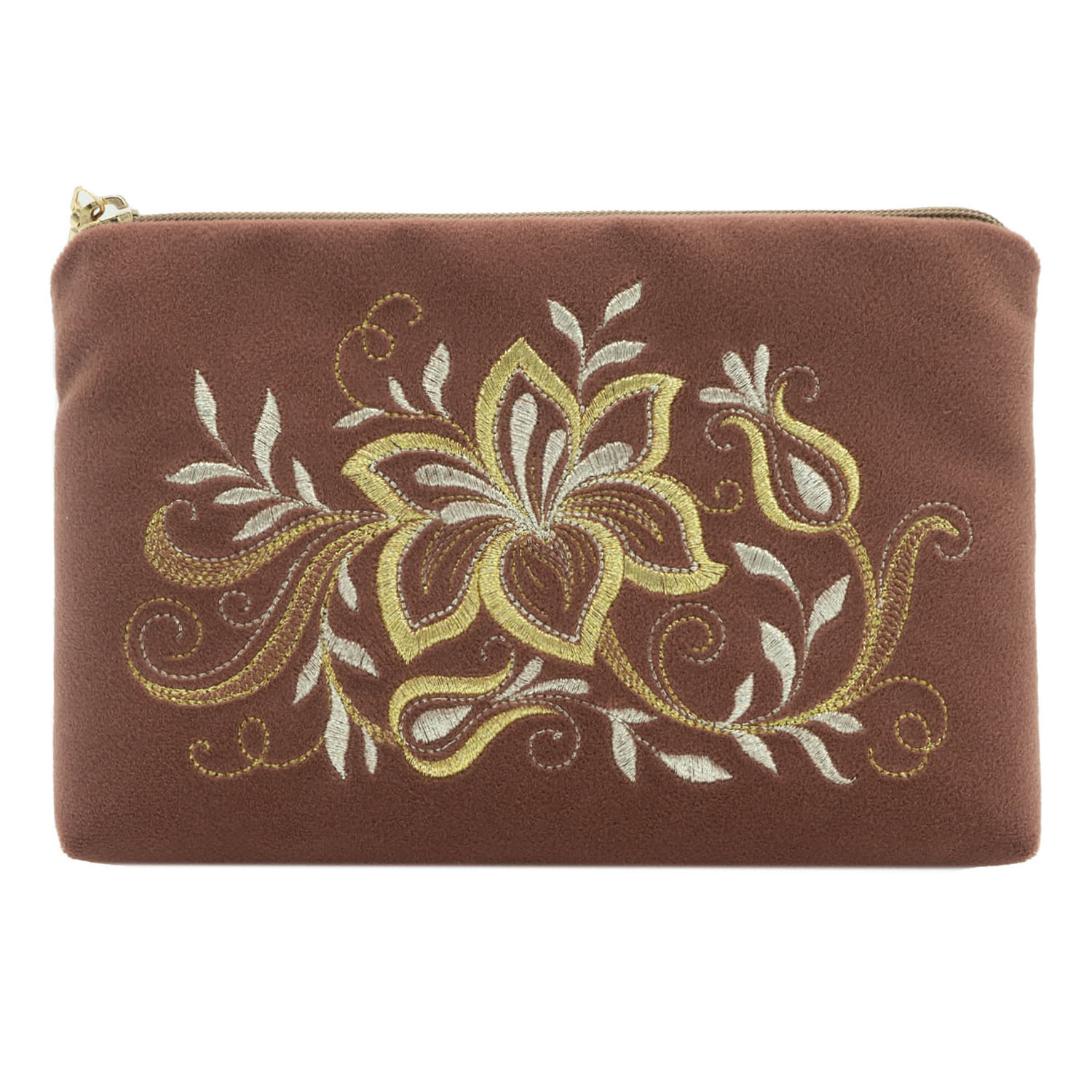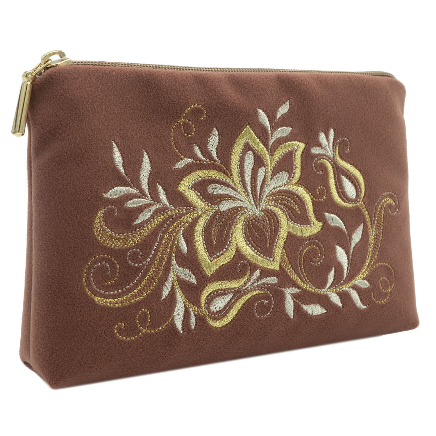 Русские подарки и сувениры → Аксессуары → Косметички → Косметичка бархатная с вышивкой "Нежность". Темно-розовая