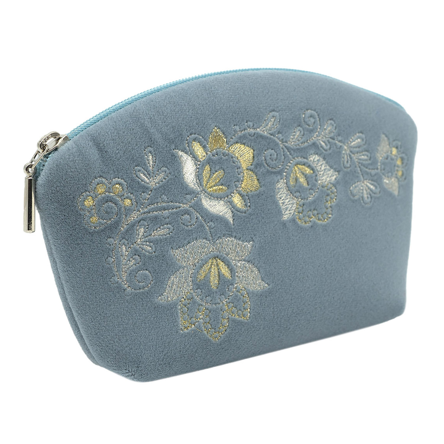 Косметичка бархатная с вышивкой "Весеннее настроение". Голубая.
