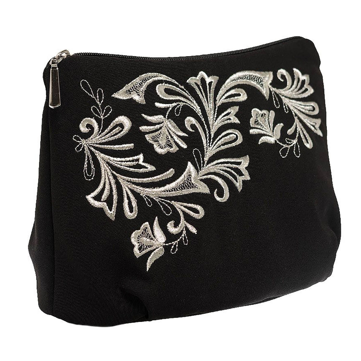 Косметичка с вышивкой "Морозный узор". Черная