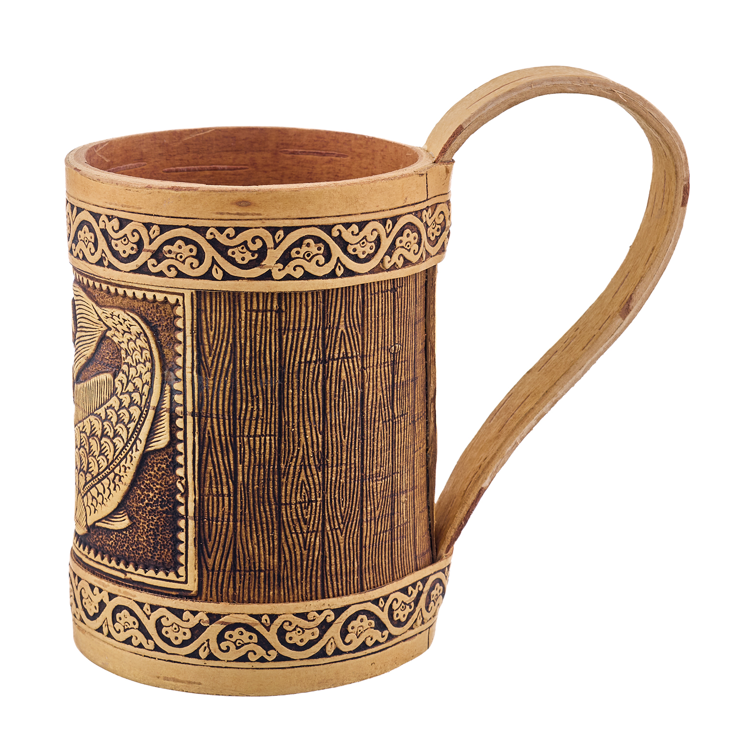 Кружка пивная из бересты "Рыба. Не держи меня пустой".Материал: береста.