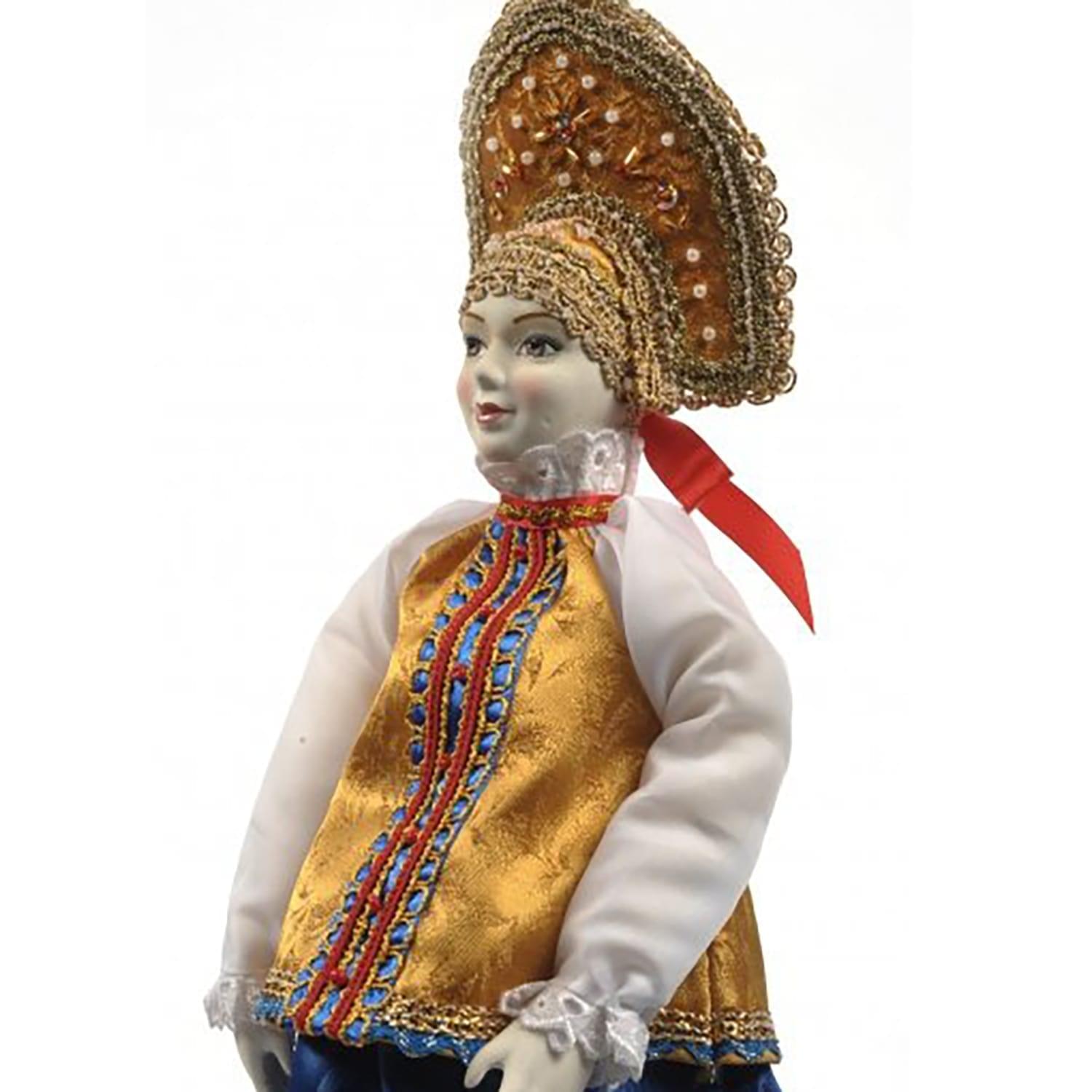 На Руси испокон веков женщины одевались ярко и обильно даже дома: бедные носили длинные хлопковые рубахи, богатые - красные шелковые платья, украшенные жемчугом. При Иване Грозном модницы надевали около 20 килограммов предметов: от нижнего белья до телогрей. Голову покрывали волосником, повойникоми или платком. «На выход» предпочитали кики, кокошники, зимние меховые шапки. В праздники наряжались в нарядные сарафаны, блузы с национальным орнаментом, безрукавные епанечки, просторные косоворотки, кокошники. Русский народный костюм позволяет самовыразиться. Для коллекционеров данная кукла может стать ценным экспонатом. Она одета в расшитый тесьмой сарафан, роскошный кокошник, воплощая истоки самобытных культурных традиций. ...