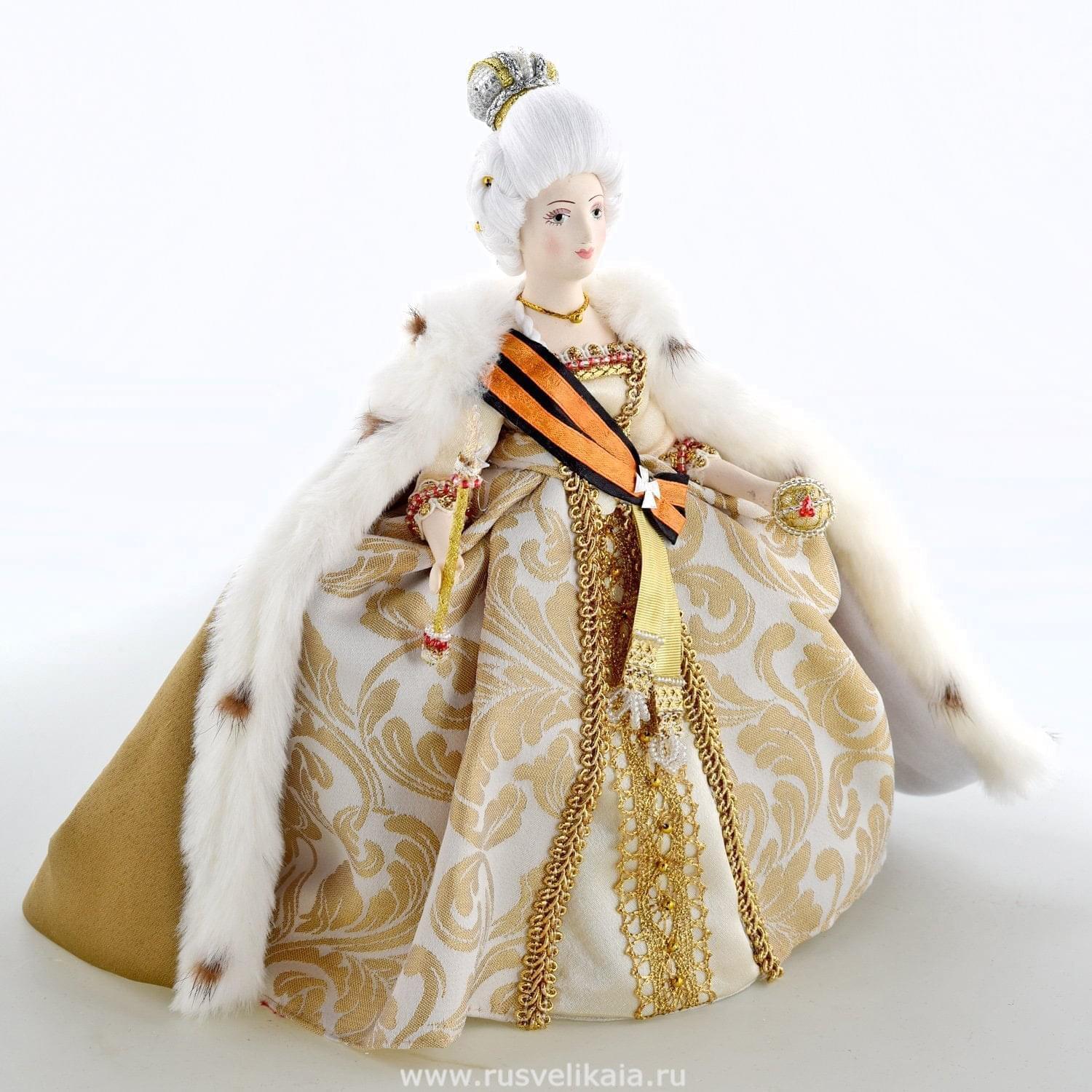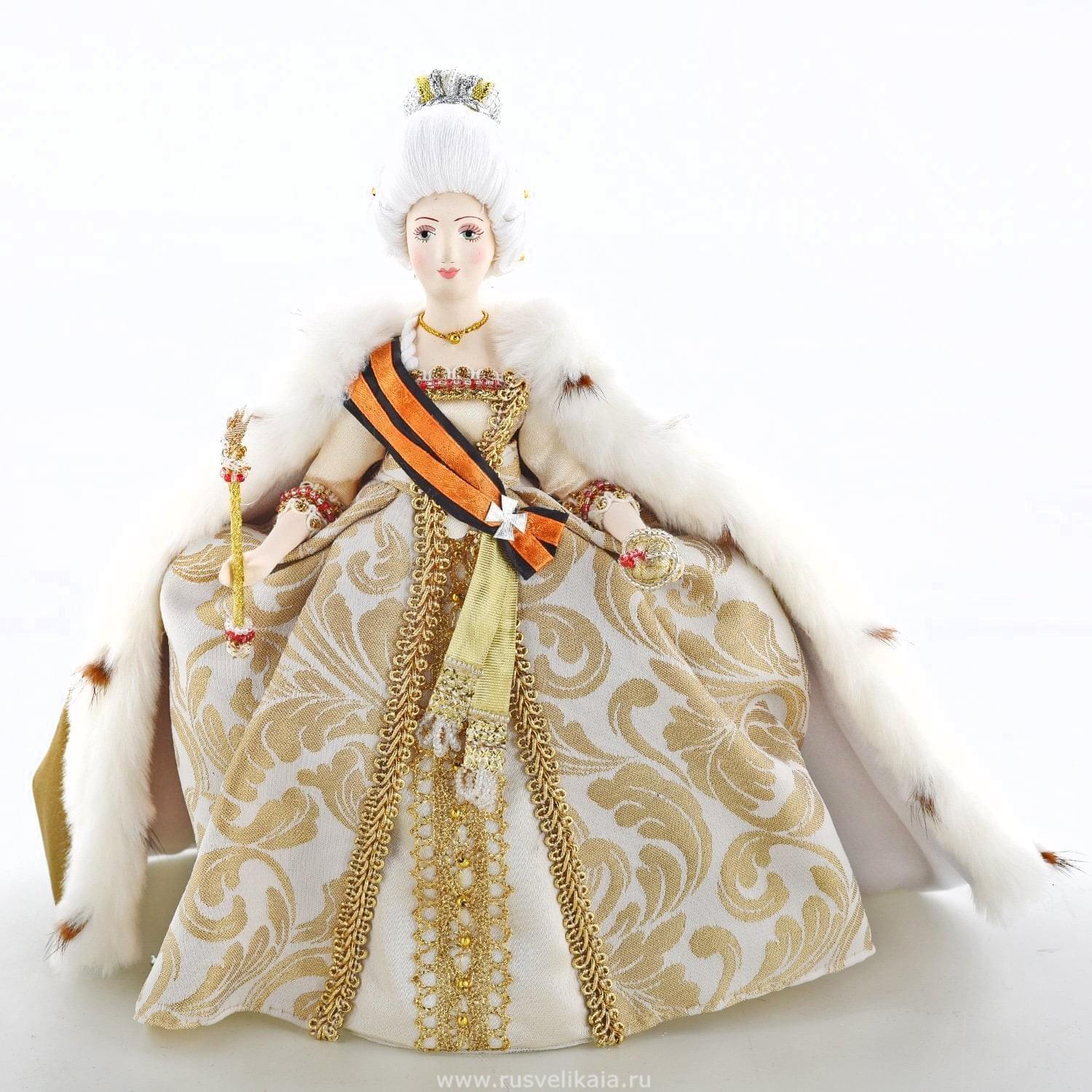 Кукла, в которой воплощен образ Ее величества, императрицы Екатерины II, - 100% элемент русского стиля в интерьере. Властная и умная женщина возглавляла государство российское с 1762 по 1796 год, при ней Россия вошла в число великих европейских держав. Дворянское сословие при ее правлении получало массу привилегий. Границы России были значительно расширены, а система государственного управления была впервые после правления Петра I реформирована. <br><br>