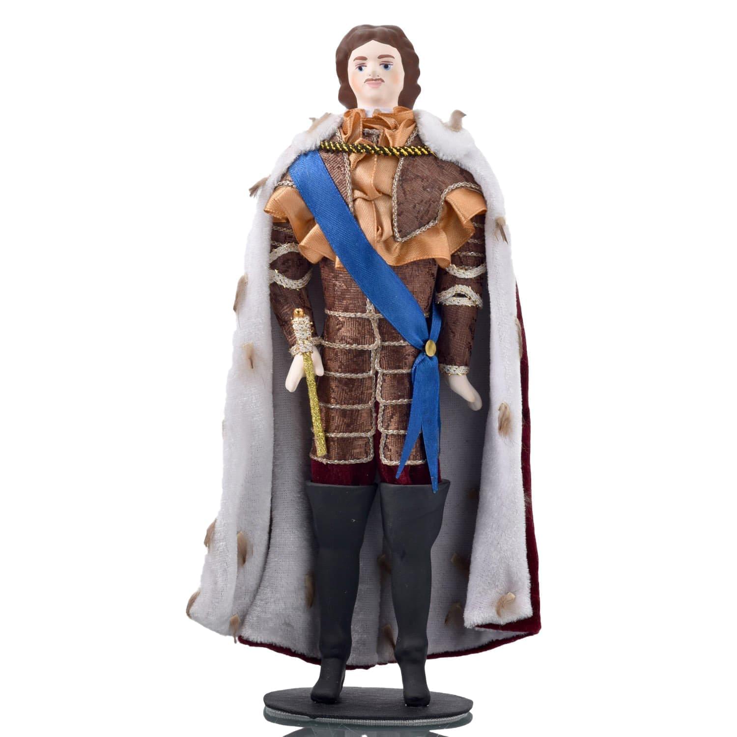 Лицо и руки великого русского царя и государственного деятеля, Романова Петра Алексеевича, прозванного Великим, проявлявшего большой интерес к наукам, моде и заграничному образу жизни, изготовлены из керамики на основе высококачественной глины и расписаны вручную по неглазурированной поверхности. Одна из военных экипировок Петра передан достоверно и в мельчайших деталях. Кукла установлена на устойчивый постамент.