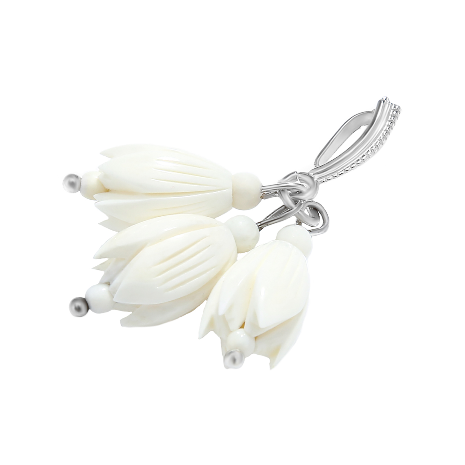 0068732 Бивень мамонта Кулон"Подснежники"серебрение