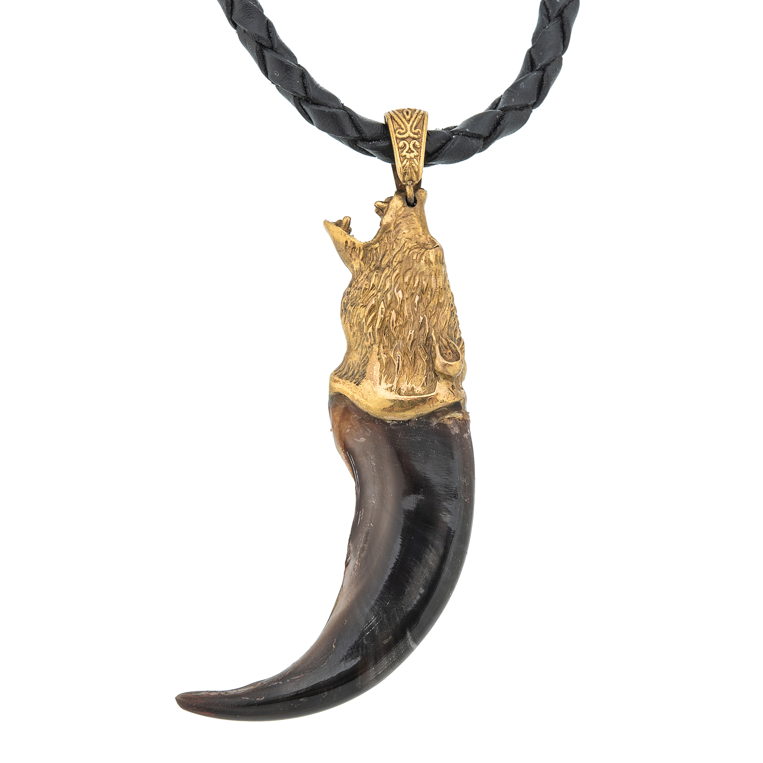 Материалы: коготь медведя, бронза, золочение, кожа.