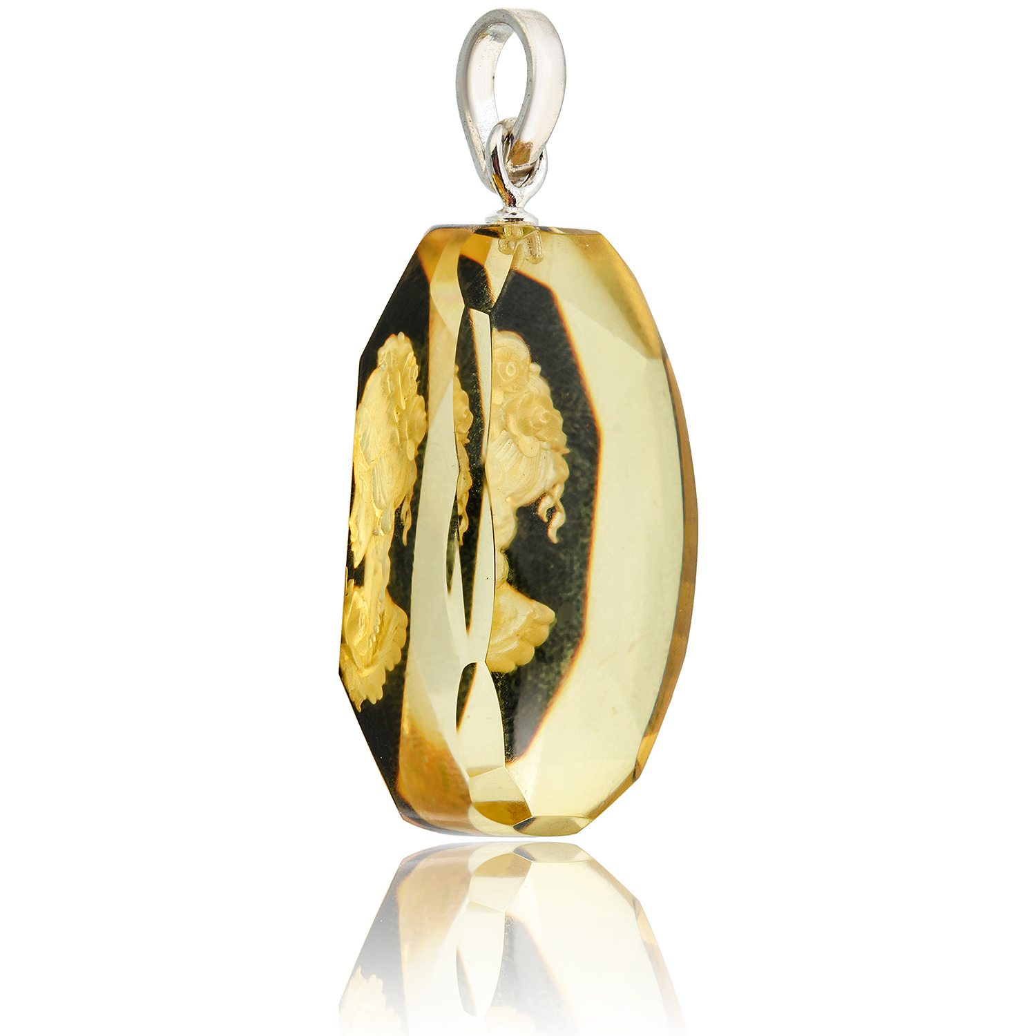 Русские подарки и сувениры → Украшения → Кулоны и подвески → Кулон из натурального янтаря с гравировкой "Камея"