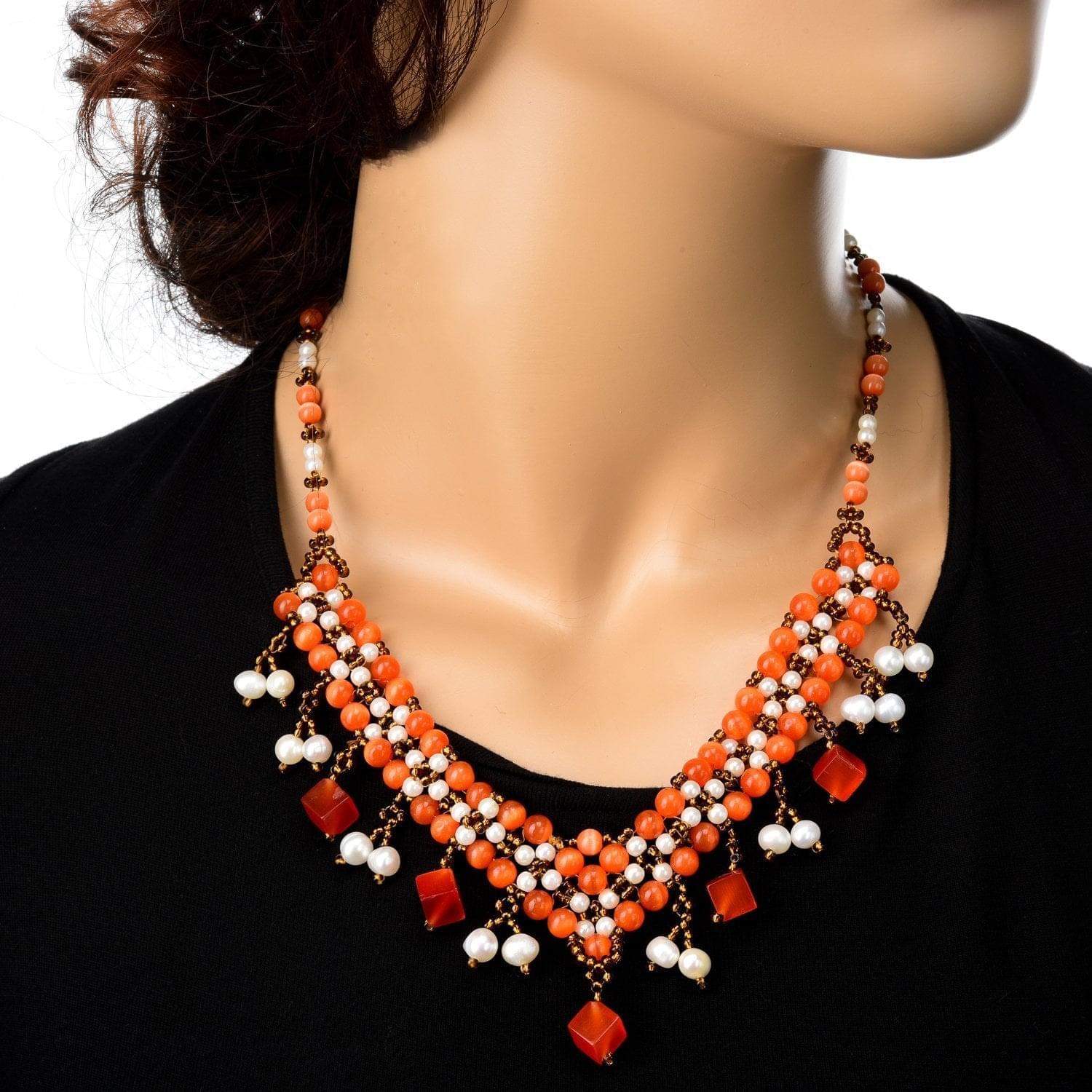 0040278/жемчуг с подвесками Бисер КОЛЬЕ (жемчуг, кошачий глаз) ....