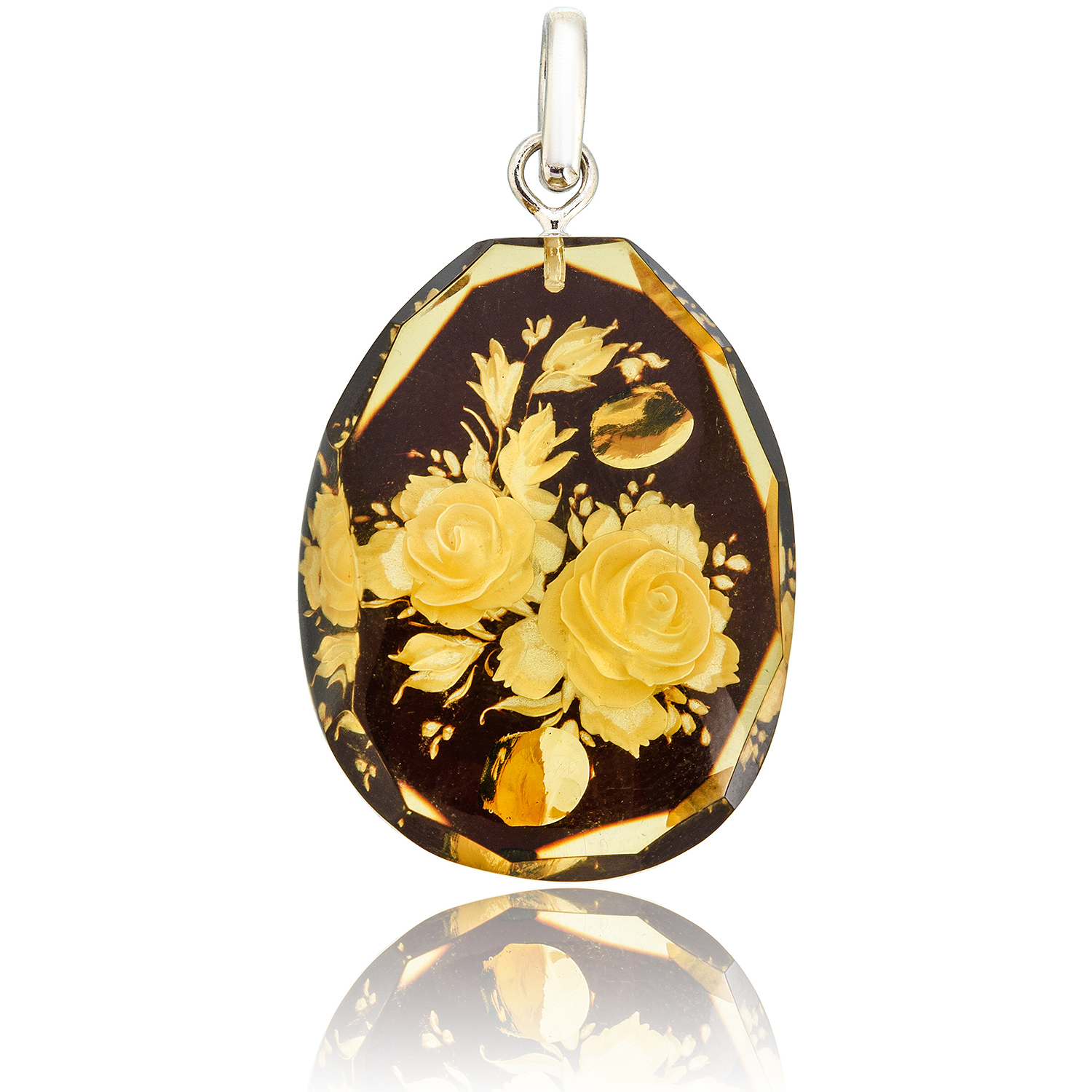 Кулон из натурального янтаря с гравировкой "Цветы"